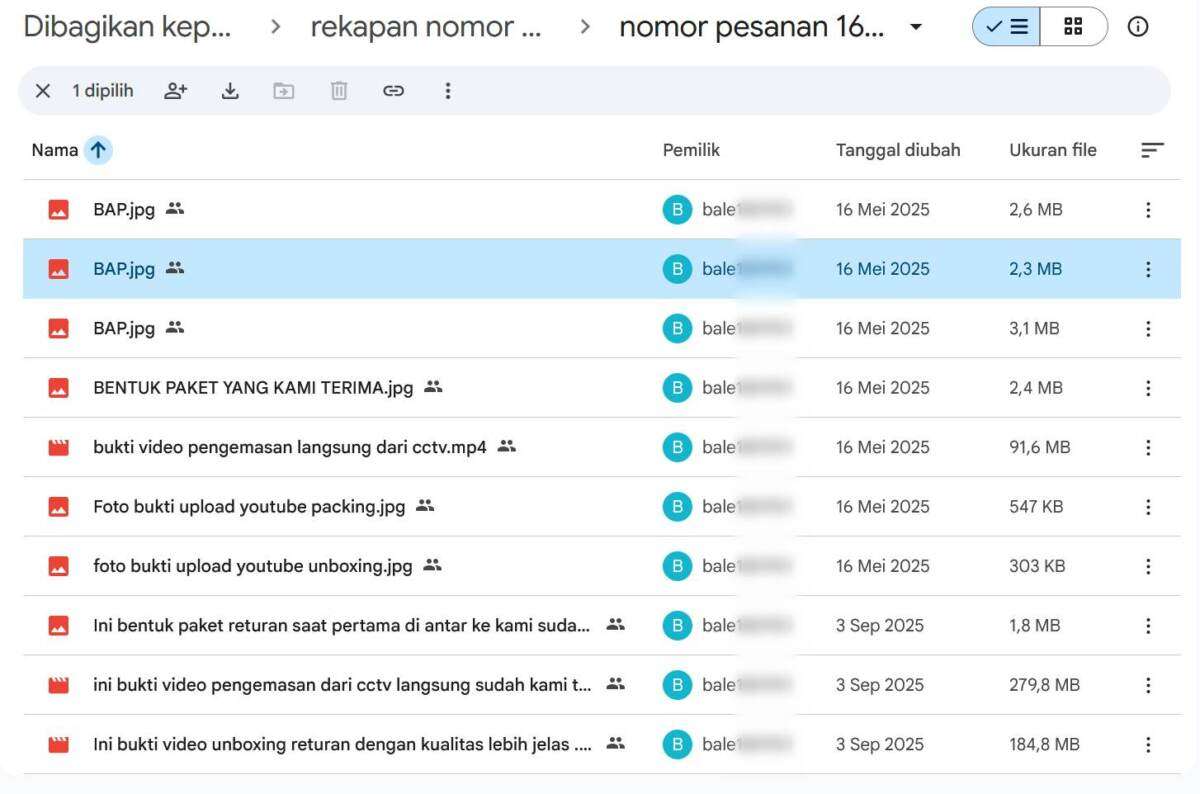Bukti-bukti lengkapnya (BAP, foto, dan video packing serta unboxing) kami lampirkan melalui tautan drive ini: https://drive.google.com/drive/folders/10VRa5ihXXX (catatan redaksi: Tautan ini disensor dan tidak bisa dibagikan karena terdapat data-data identitas pribadi terbuka)