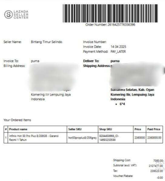 Saya telah melengkapi laporan dengan foto, video unboxing, resi, serta bukti lainnya, dan telah mengajukan komplain melalui Seller Center. Sayangnya, pihak Lazada menyatakan bahwa permintaan ganti rugi tidak dapat diproses dengan alasan paket tidak terindikasi dibuka atau diganti, padahal bentuk paket dari CCTV dan bentuk paket returan jauh berbeda.