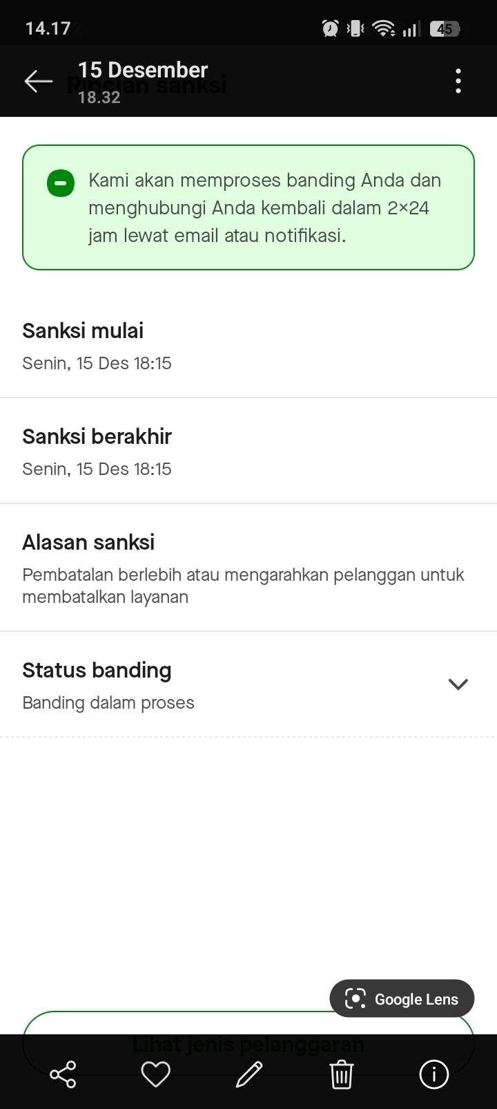 Saat ini, saya merasa bingung bagaimana cara memberi nafkah untuk keluarga saya sementara akun saya sudah diputus mitra. Apakah saya benar-benar melakukan pelanggaran seberat itu, atau akun saya memang sudah ditargetkan untuk di-banned mengingat saya sudah cukup lama bergabung sebagai mitra Gojek?