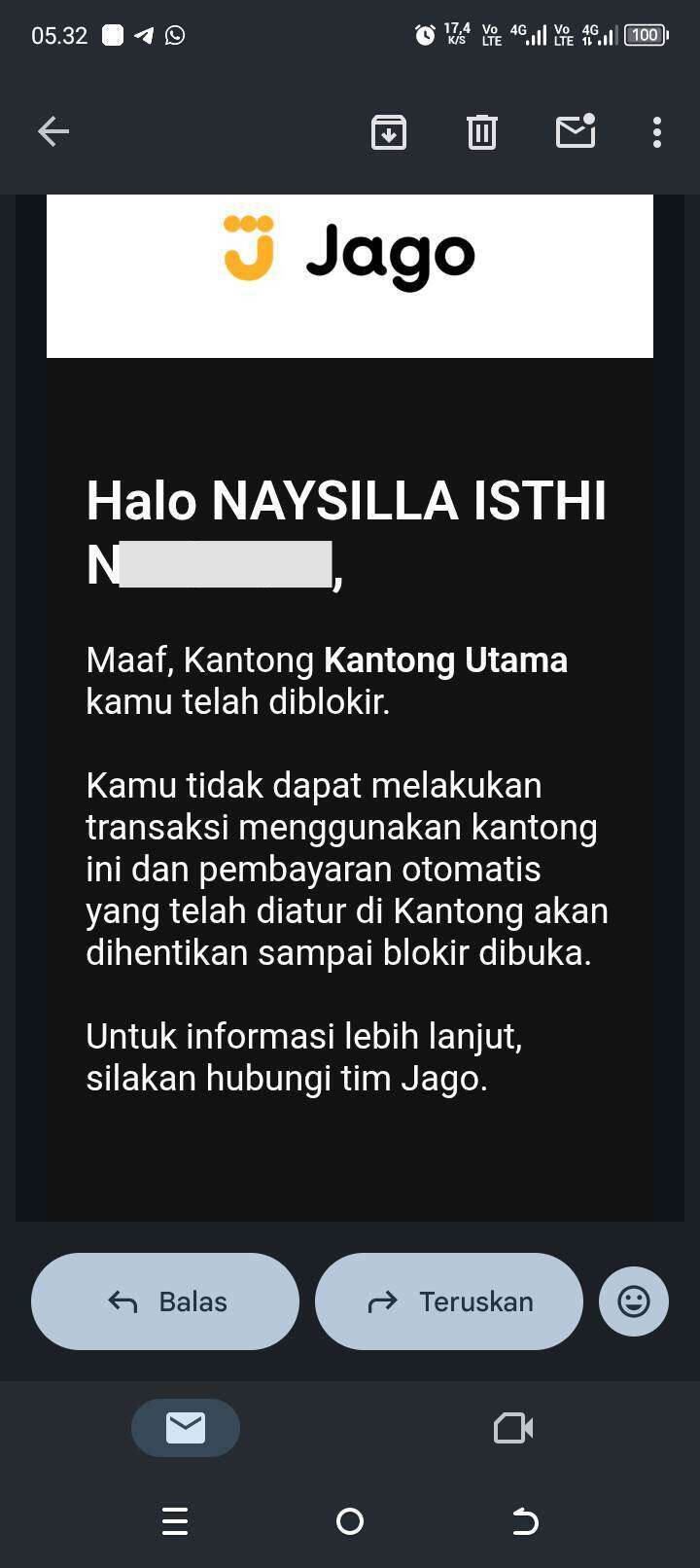 Nama saya Naysilla, melalui tulisan ini, saya ingin menyampaikan pengalaman yang saya alami. Pada tanggal 25 November 2025, akun Bank Jago saya tiba-tiba diblokir dan tidak dapat diakses.