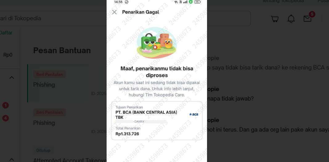 Masalah: Tidak bisa tarik dana, saldo dibekukan karena pemeriksaan “phishing”.