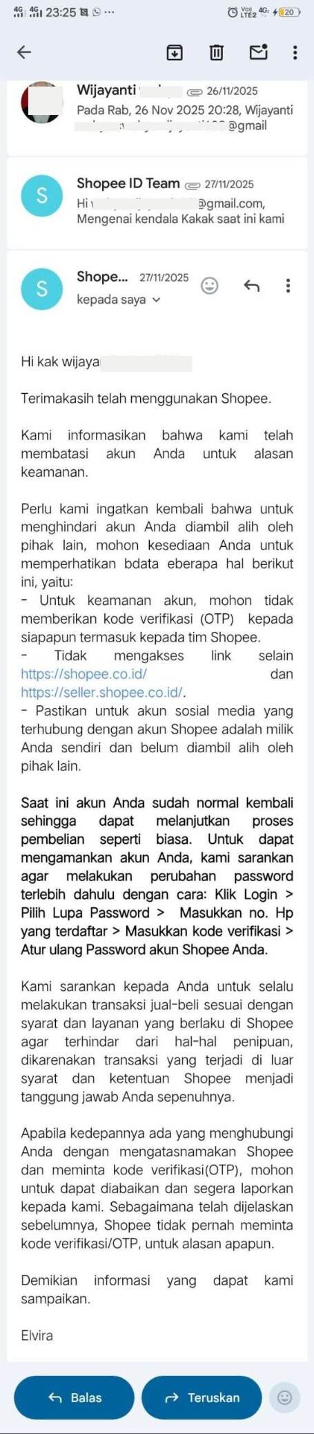 Perkenalkan, nama saya Wahyu, seorang pengguna akun Shopee yang masih menghadapi masalah hingga saat ini. Kejadiannya bermula pada tanggal 26 Oktober 2025 siang hari, ketika tiba-tiba saya menerima beberapa SMS dari Shopee yang mengirimkan kode OTP.