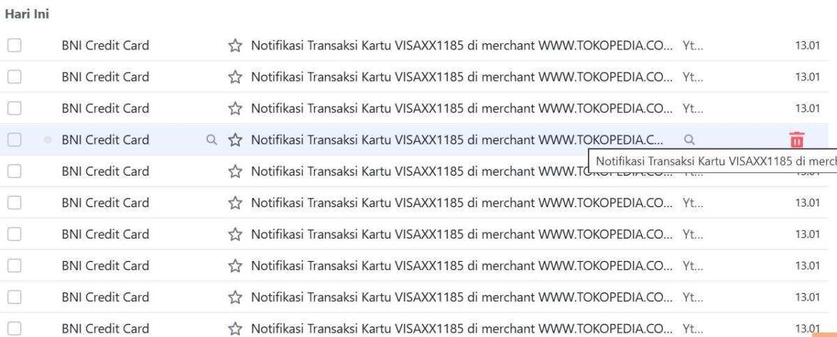 Pada tanggal 11 Januari 2026 pagi, saya masih menemukan sekitar 50 email di inbox saya dari bank mengenai percobaan penggunaan kartu kredit saya, dan semuanya juga gagal.