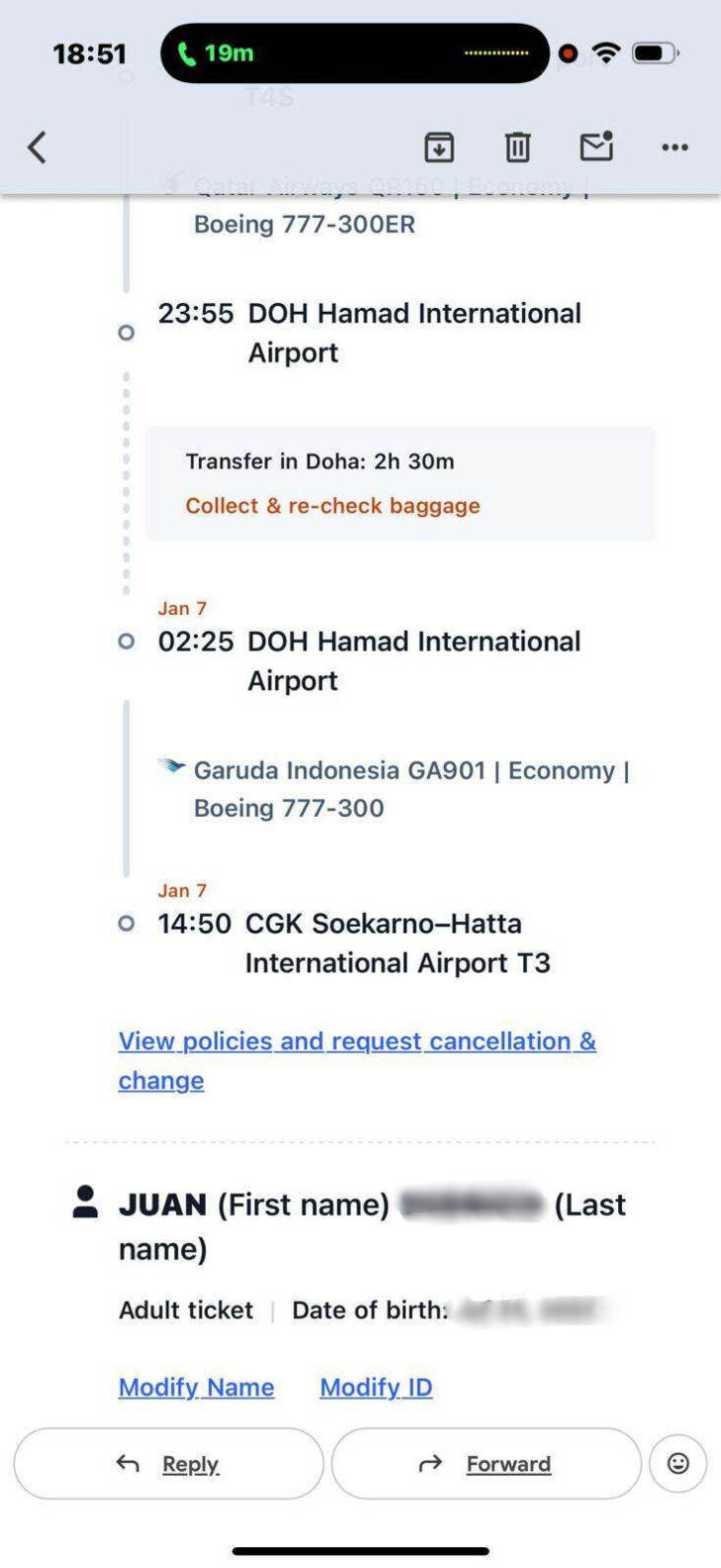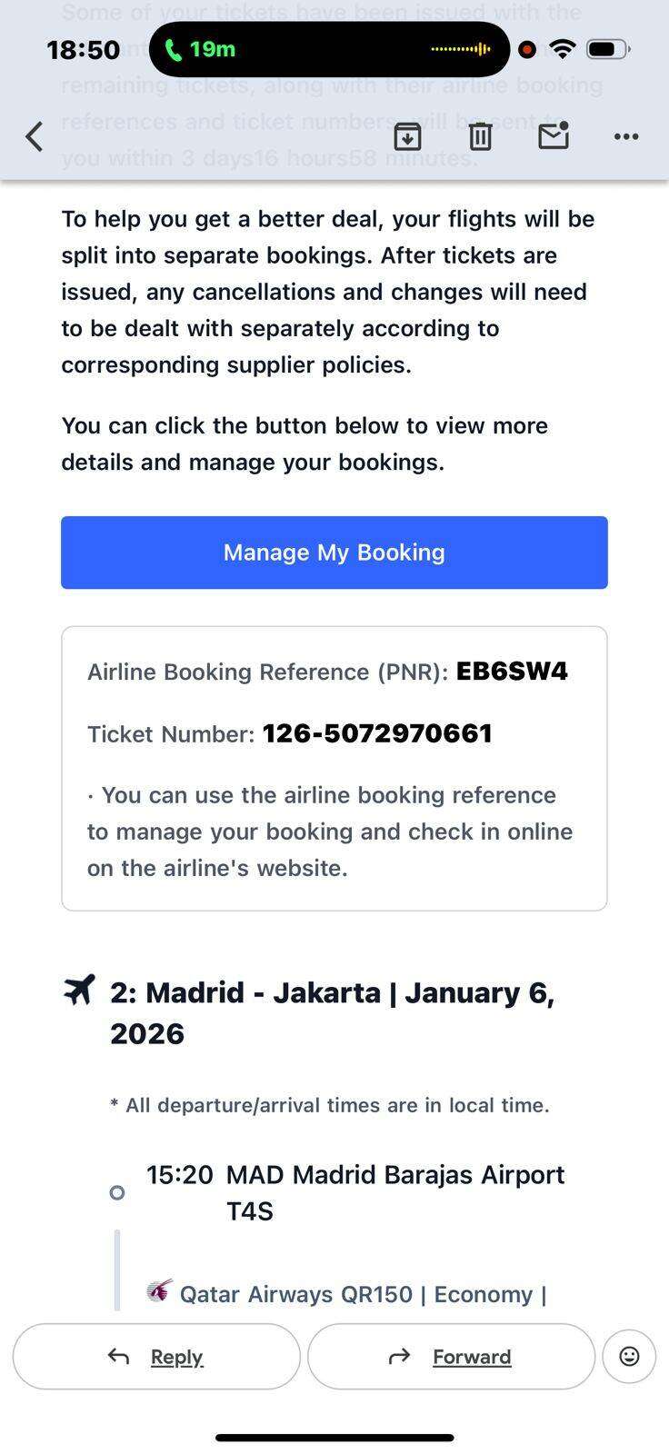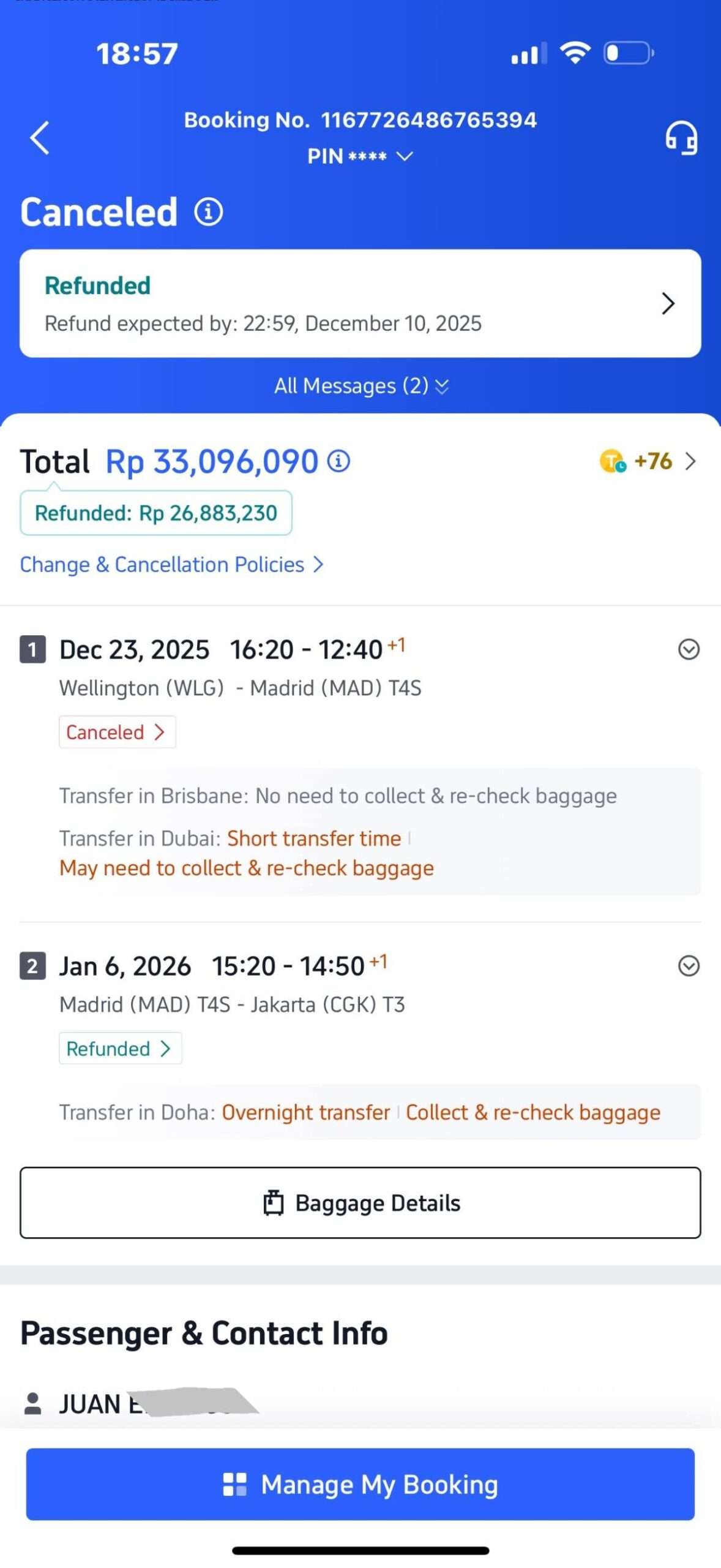 Pada hari Rabu, 19 November 2025, saya membeli tiket multi-kota melalui aplikasi Trip.com dengan detail sebagai berikut: