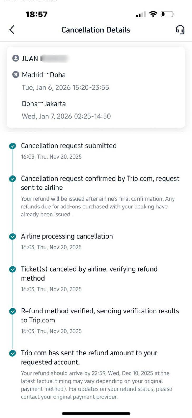 - Dana pengembalian telah dikirim ke rekening Bank BRI menurut pihak Trip.com.