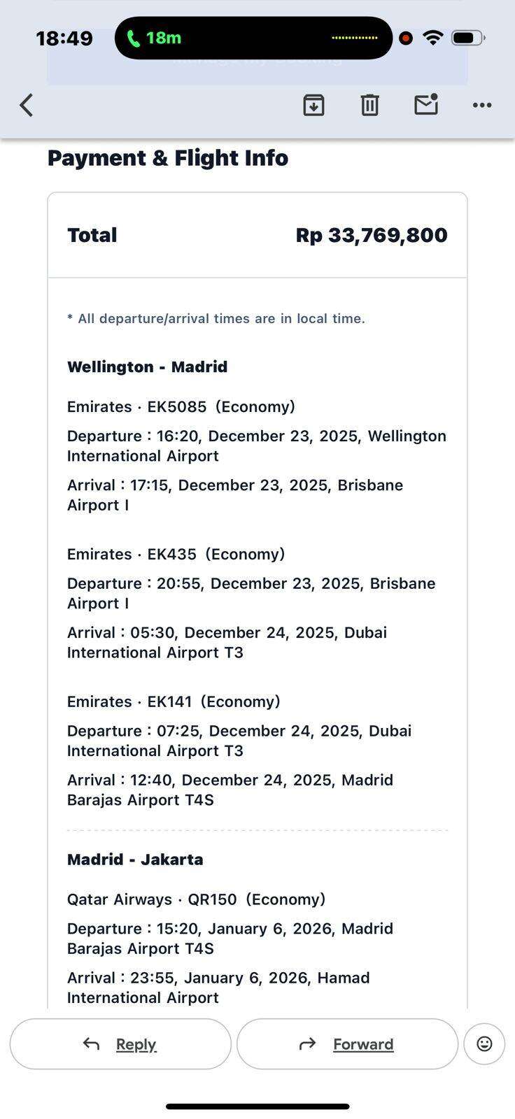 - Wellington (WLG) → Madrid (MAD) – 23 Desember 2025