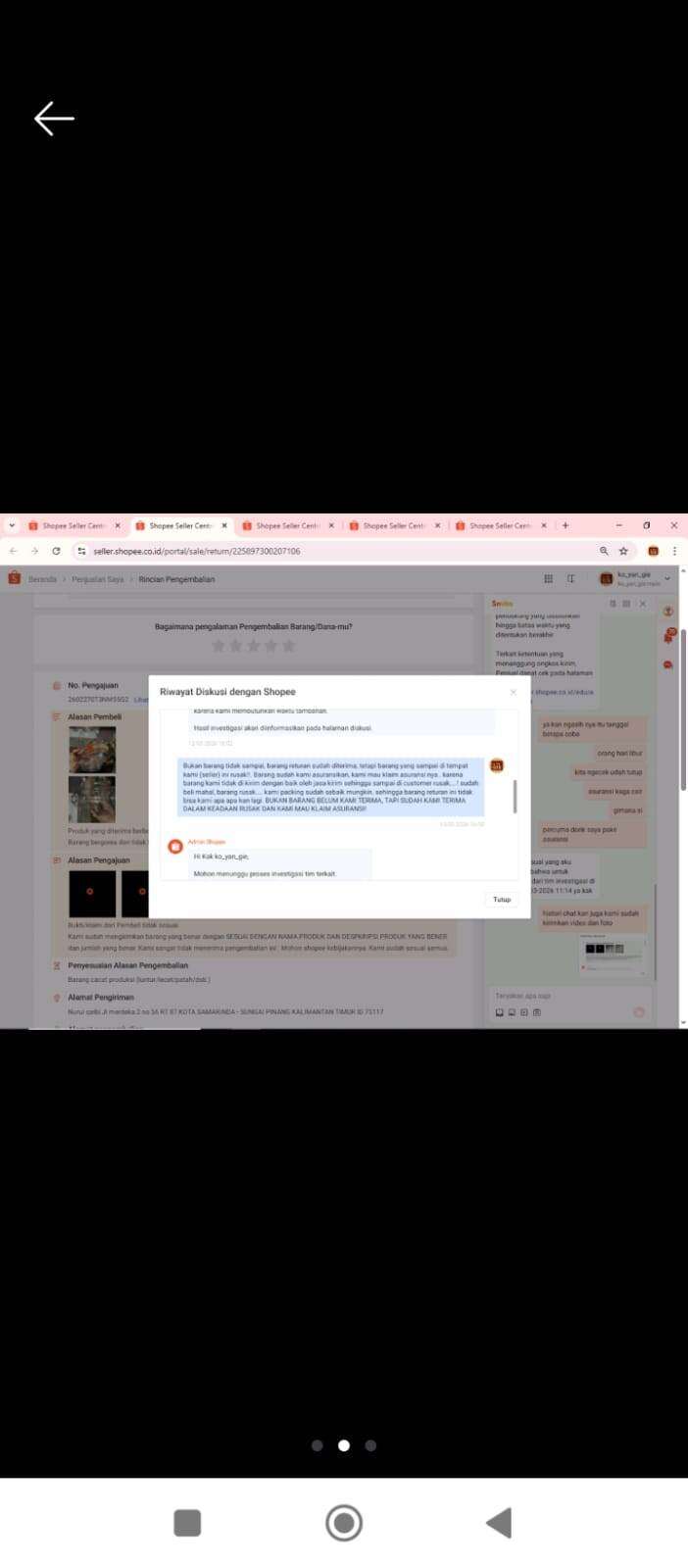 Membantu menyelesaikan persoalan terkait sprinter/pengembalian barang yang sempat dijadikan alasan oleh pihak Shopee.