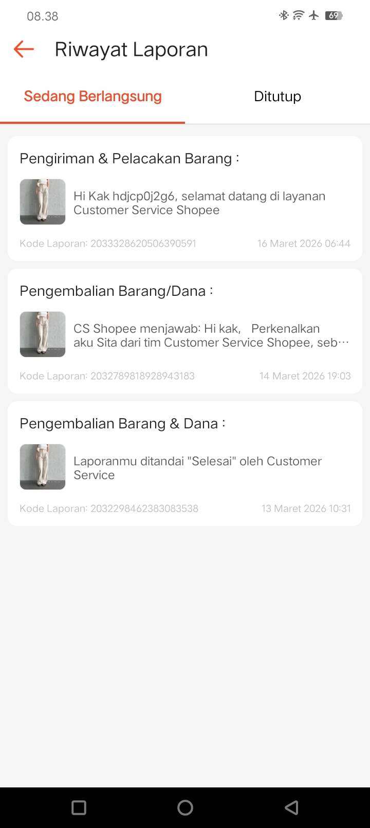 Kedua, pada pagi hari tanggal 16 Maret 2026, CS Sha*** menjanjikan eskalasi cepat, tetapi hingga pukul 08.40 tidak ada hasil nyata selain penambahan nomor laporan baru.