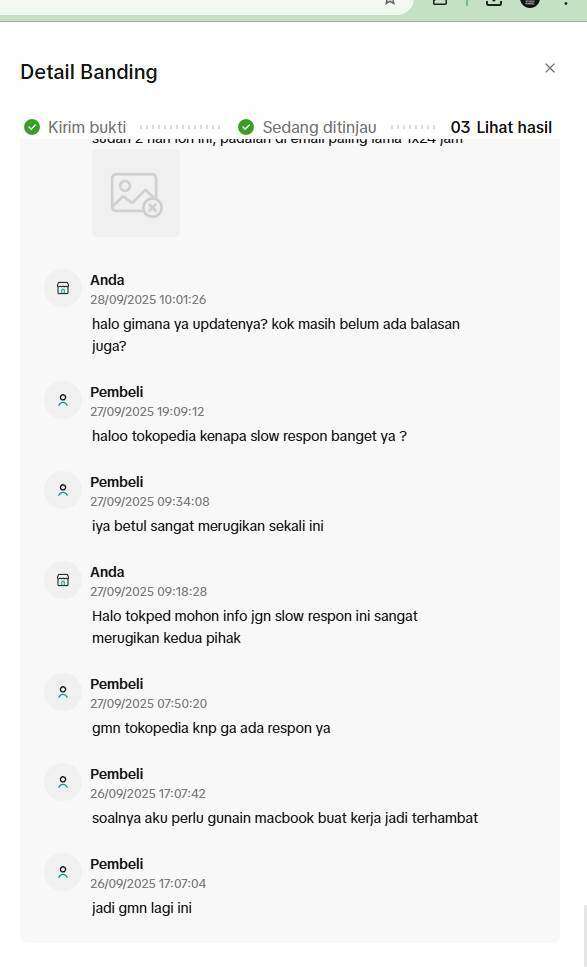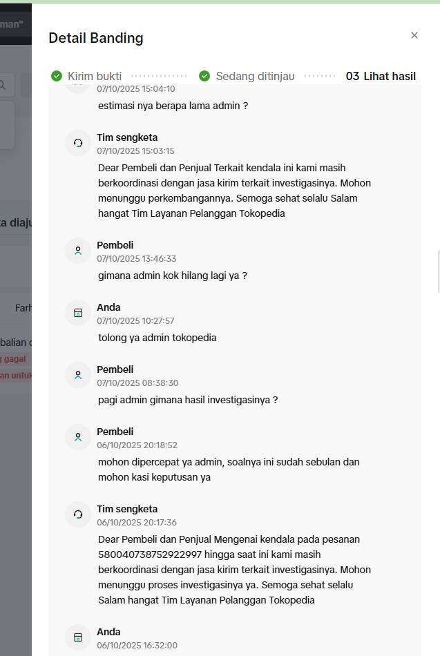Proses investigasi dari pihak Tokopedia dan ekspedisi sangat lama dan tidak transparan, menyebabkan kerugian bagi kami sebagai penjual.