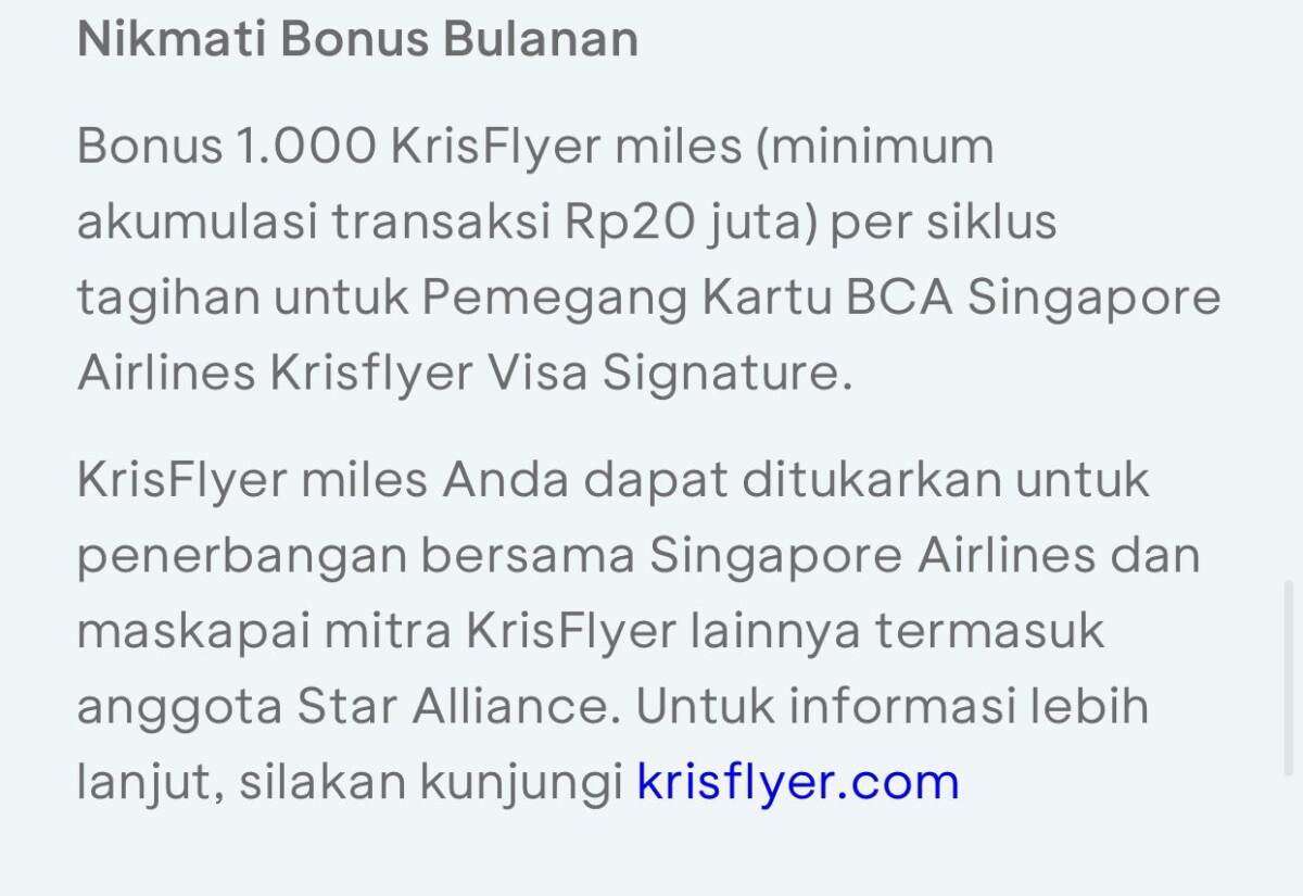 BCA Tidak Memberikan Bonus Poin Krisflyer Miles Karena Tidak Mau Rugi