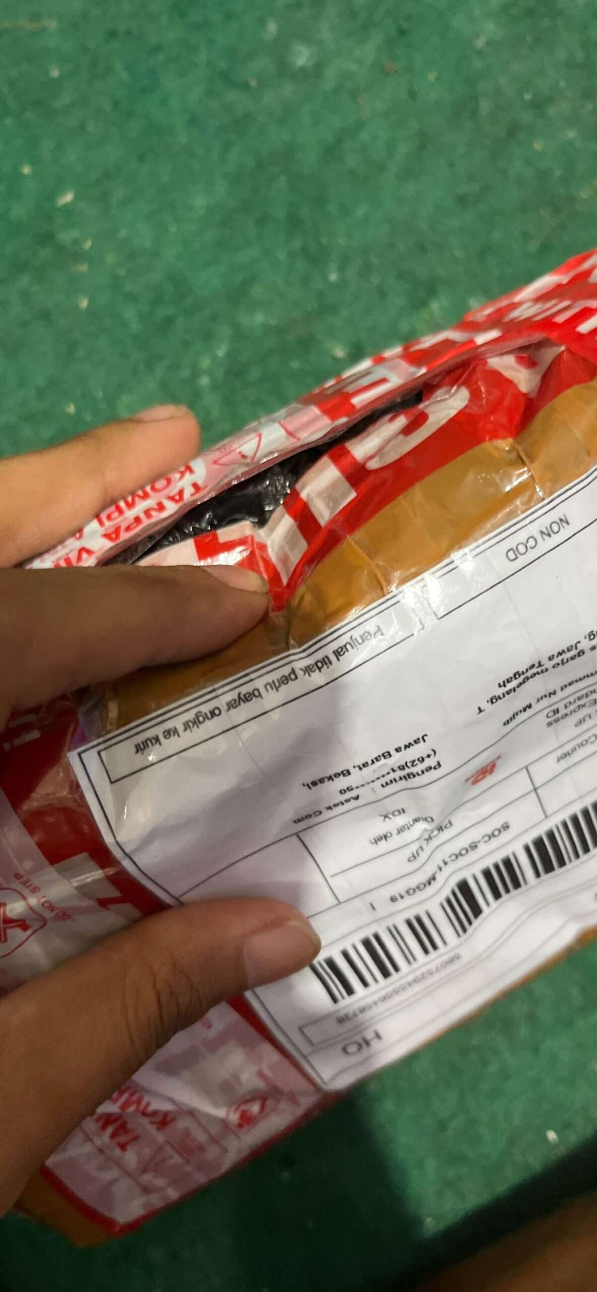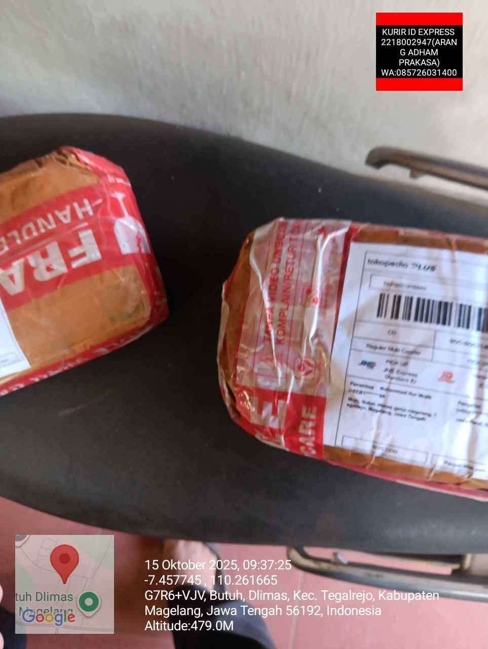 Namun, pada tanggal 15 Oktober 2025, barang tersebut diantar oleh kurir ID Express dengan sedikit perbedaan dari paket-paket sebelumnya. Nomor resi pengiriman: TKP5021916840. Saya pun mengonfirmasi kepada toko mengenai kemasan yang berbeda dari yang lain, dan paketnya terasa sangat ringan. Terdapat lakban yang tidak rapi dan bekas sobekan di samping, seolah-olah terkena gunting.