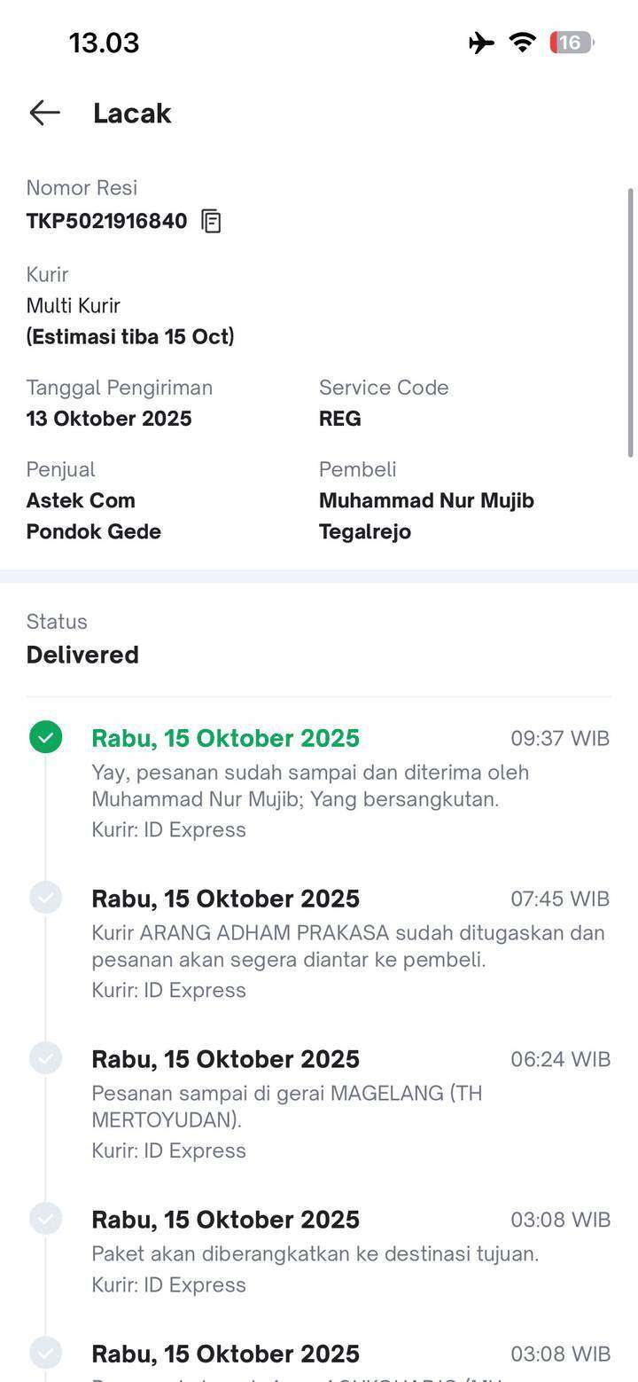 Kasus ini dimulai pada tanggal 13 Oktober 2025, ketika saya memesan satu unit iPhone 16 di toko Astek.com di Tokopedia, beserta asuransi pengiriman. Sebelumnya, saya telah melakukan pemesanan di toko ini sebanyak empat kali dan semuanya aman,