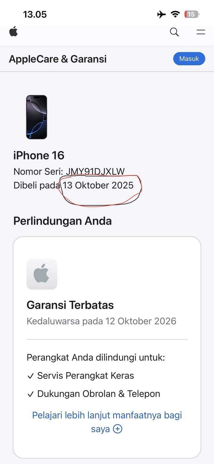 Setelah saya cek, Serial Number perangkat tersebut menunjukkan bahwa perangkat sudah diaktifkan pada tanggal 13 Oktober 2025, saat itu masih berada di JNE Bekasi, dan semua bukti masih saya simpan.