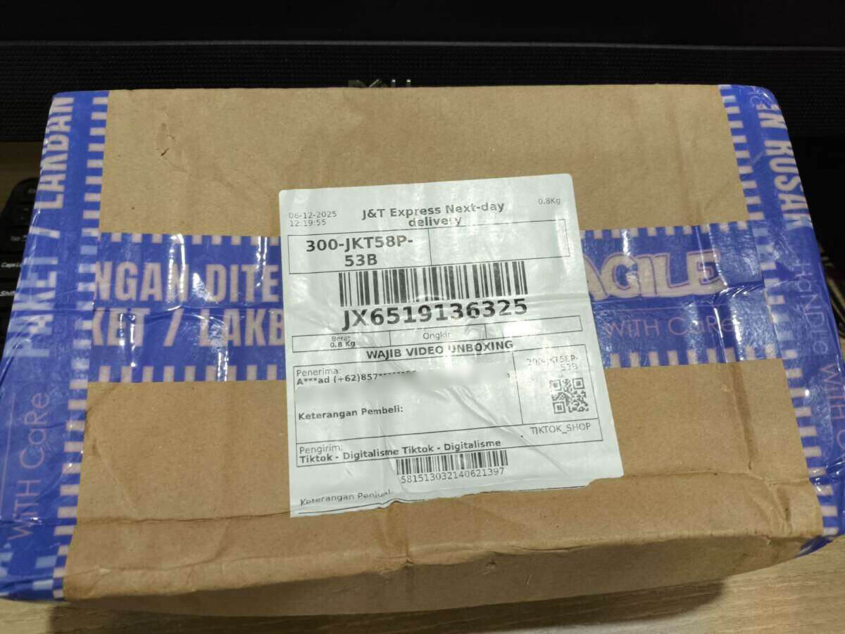 Saat paket sampai, saya memfoto paket dan merekam video unboxing tanpa jeda. Hasilnya sangat mengecewakan karena paket yang saya terima hanya berisi air mineral dan sebatang pulpen. Berikut foto dan video unboxing saya.