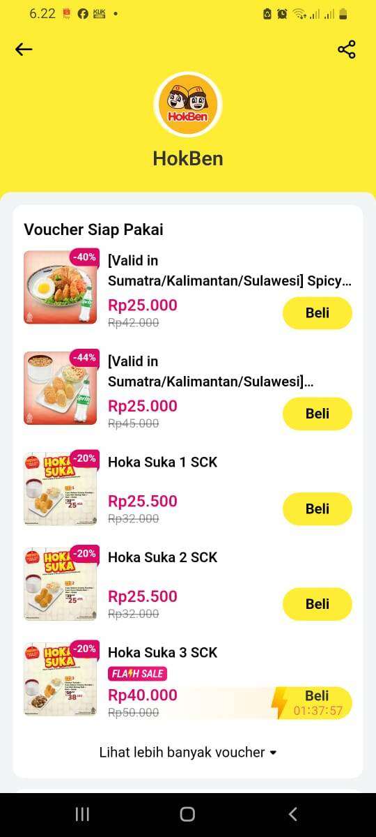 Awal bulan Desember 2025, saya membeli voucher HokBen di Qpon dengan promo khusus wilayah Kalimantan, Sumatra, dan Sulawesi.