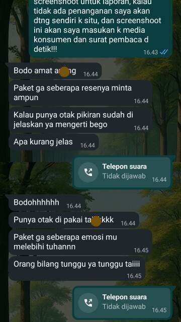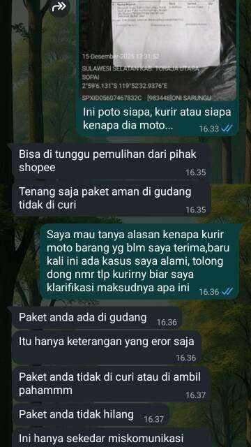 Karena merasa khawatir, saya mencoba menghubungi pihak SPX Express di Rantepao untuk menanyakan nomor telepon kurir yang bersangkutan. Namun, alih-alih mendapatkan penjelasan atau bantuan, saya justru menerima balasan berupa kata-kata kasar dan makian yang tidak pantas, bahkan menggunakan kata-kata yang merendahkan.
