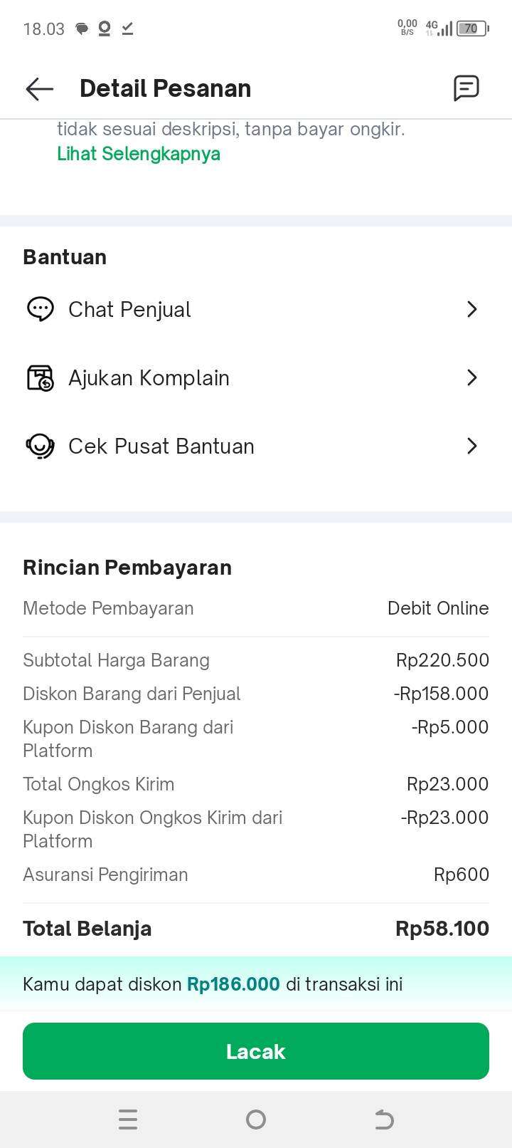 - Saya kehilangan diskon yang saya dapatkan sebesar Rp163.000.