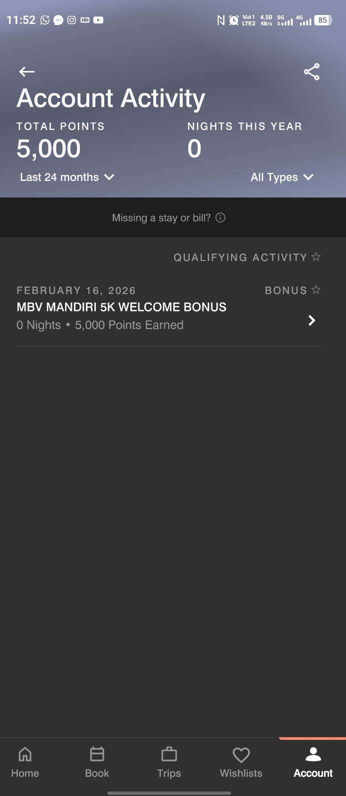- Benefit free night hotel yang menjadi bagian dari program promosi juga belum masuk ke akun Marriott Bonvoy saya.