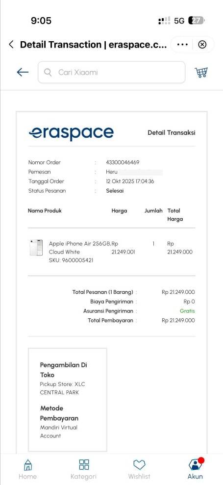 Saya melakukan pemesanan pre-order iPhone Air melalui aplikasi Livin Sukha pada tanggal 12 Oktober 2024 pukul 17:08 WIB (18:08 SGT – kebetulan saya sedang berada di Singapura), dengan memilih cicilan 24 bulan menggunakan kartu kredit Mandiri JCB Precious dan langsung mengirimkan email kembali disertai bukti transaksi di aplikasi Livin beserta screenshot banner saat transaksi.