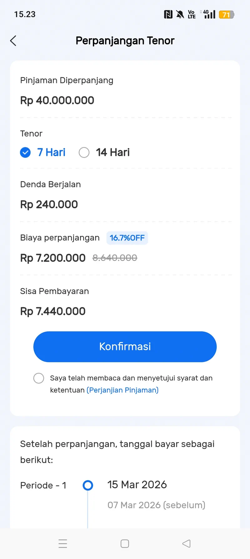- Cicilan 1, setelah 15 hari dari peminjaman.