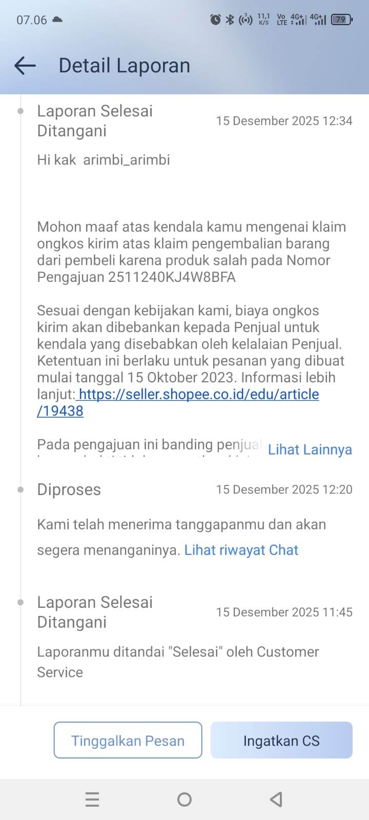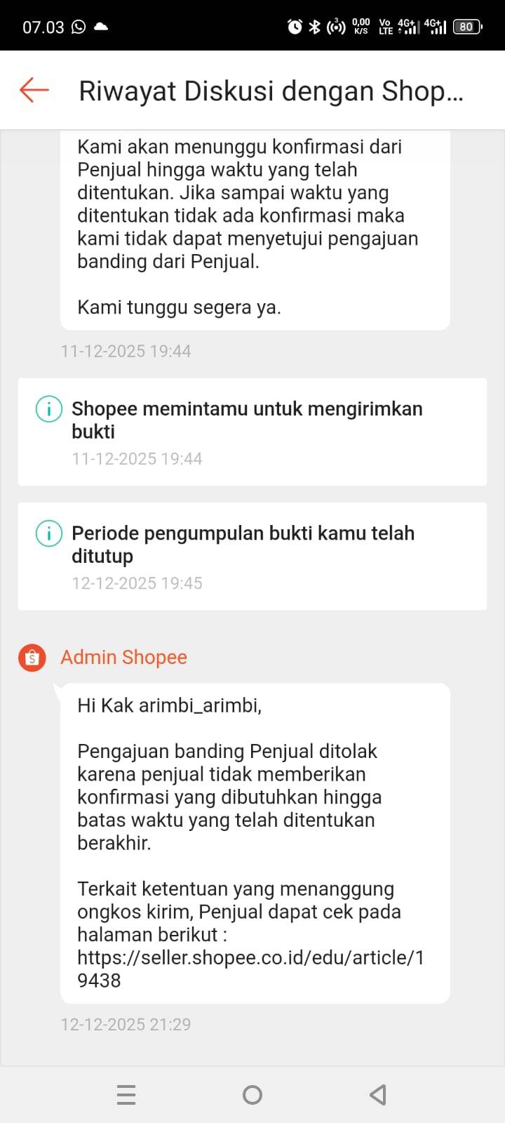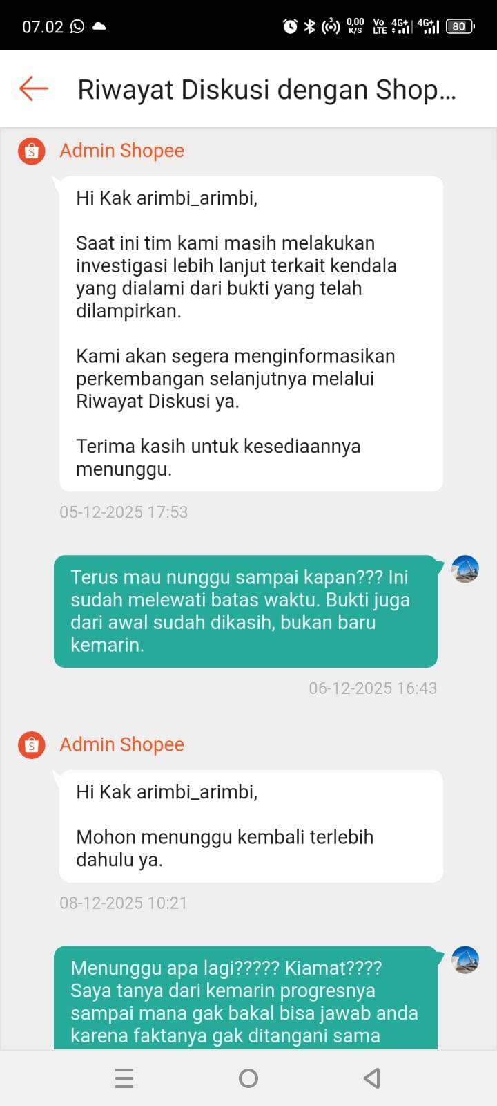 Yang lebih mengejutkan, pada tanggal 11 Desember 2025, pihak Shopee mengklaim secara sepihak bahwa paket sudah sampai ke saya dan meminta bukti penerimaan paket tersebut, padahal faktanya paket tidak pernah saya terima. Bahkan, pada tanggal 12 Desember 2025, bertepatan dengan event 12.12, pihak Shopee langsung menutup kasus ini secara sepihak.