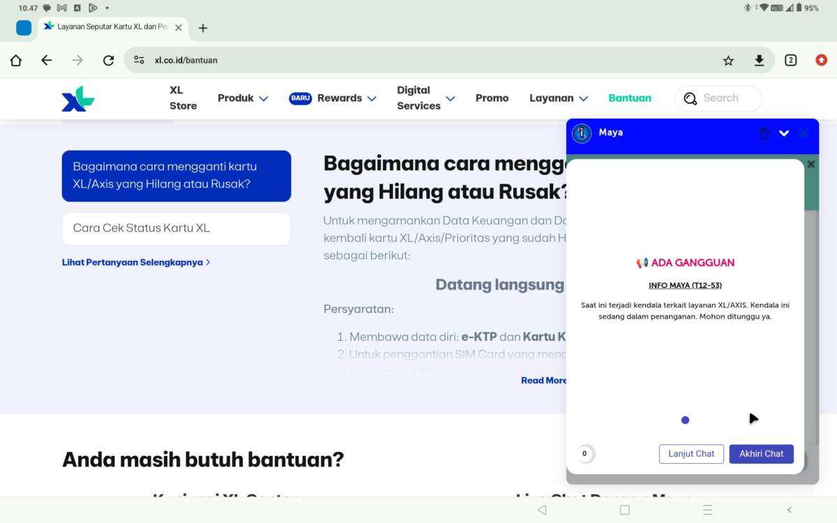 Setelah memeriksa aplikasi dan menemukan bahwa menu bonus belum tersedia, saya berpikir untuk menghubungi Customer Service. Saya mencoba menghubungi melalui xl.co.id di bagian live chat. Chat saya masuk pada pukul 10:50. Saya berharap bisa terhubung langsung dengan agen yang dapat membantu saya.