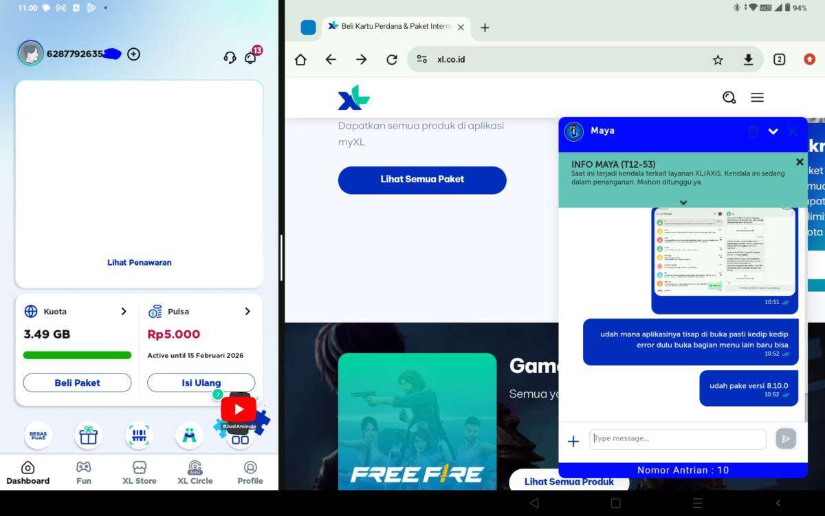 Saya mengalami masalah dengan nomor 087792635***, yang mana menu untuk klaim bonus isi ulang pulsa muncul dengan sangat lambat setelah notifikasi diterima.