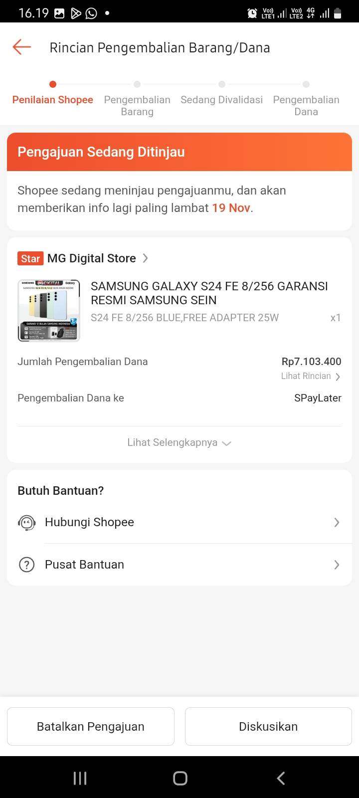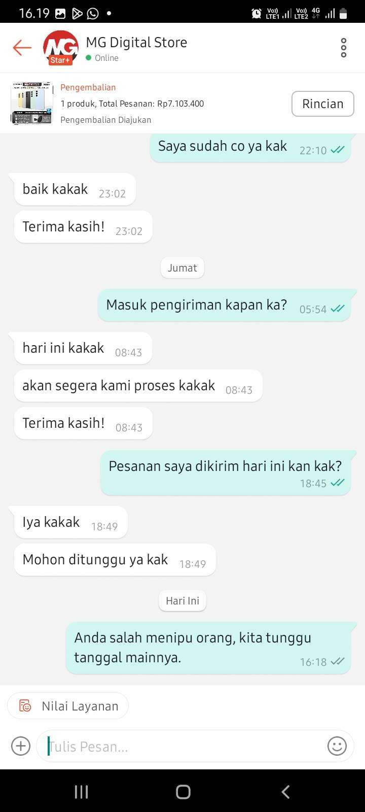 Saya meminta pengembalian dana segera diproses, dan apabila pihak Shopee membutuhkan bukti yang lebih jelas, saya bisa mengirim video lengkap. Namun, ada kendala karena proses upload di aplikasi tidak bisa penuh.