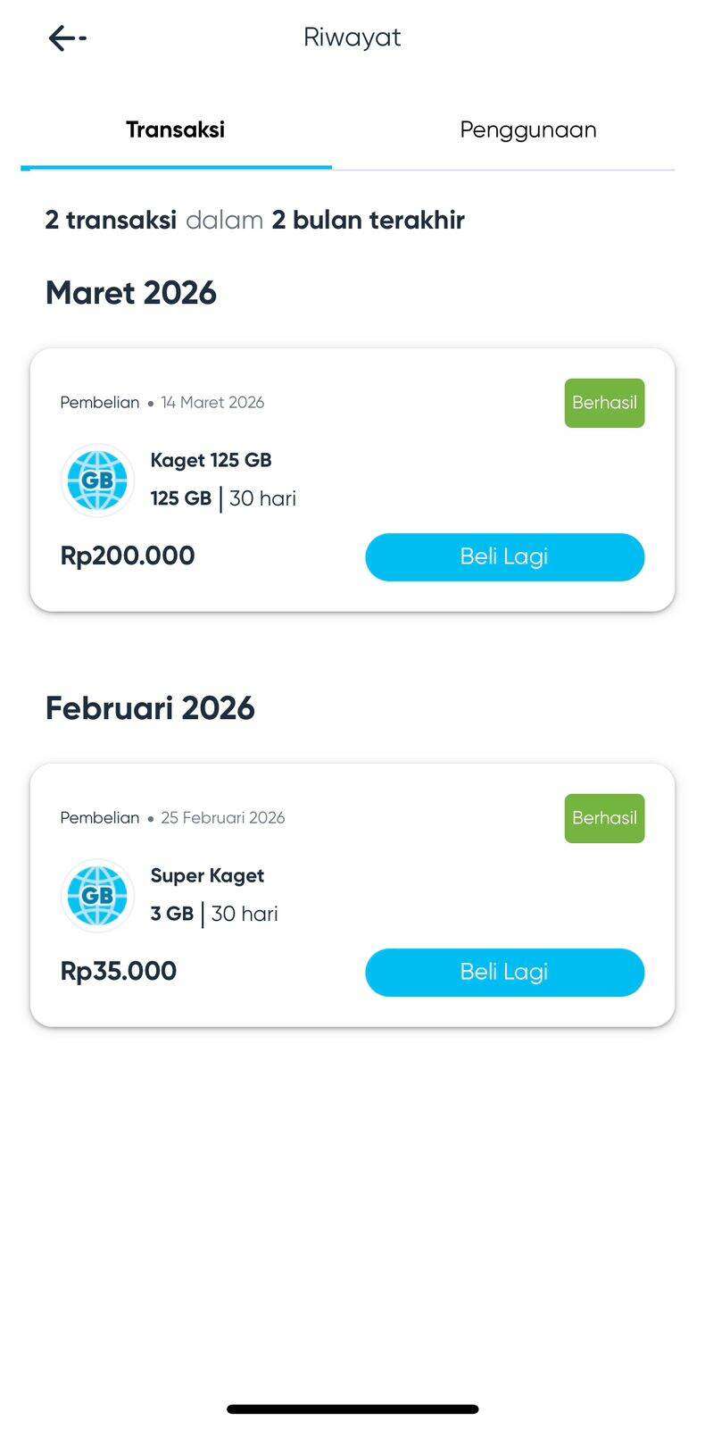 14 Maret 2026: Karena kuota sudah habis maka saya replace SIM card tersebut dengan SIM card saya yang lain. Pada minggu kedua bulan Maret 2026, saya memutuskan untuk kembali menggunakan by.U, tetapi SIM card tersebut hilang (lupa meletakkan di mana). Sehingga pada tanggal 14 Maret 2026 saya putuskan untuk ganti kartu di mesin ganti kartu Grapari Telkomsel Padjajaran Bogor.