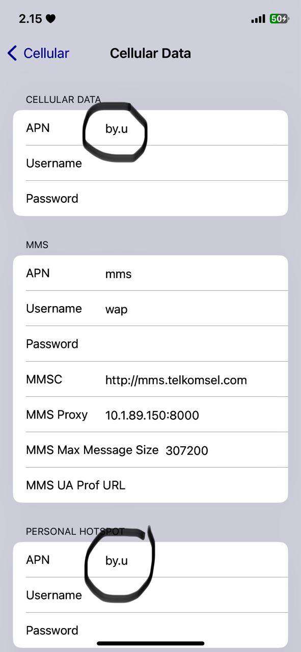Benar sesuai penjelasan petugas tadi bahwa APN SIM card tersebut masih bawaan kartu Telkomsel yaitu “internet”. Maka segera saya ganti dengan: Nama: by.U / APN: by.U. Setelah itu sinyal data tidak muncul juga. Oya, sebelumnya juga setelah insert new SIM card ke smartphone, sinyal data tidak muncul, karena itu saya langsung reconfig APN seperti gambar di bawah ini.
