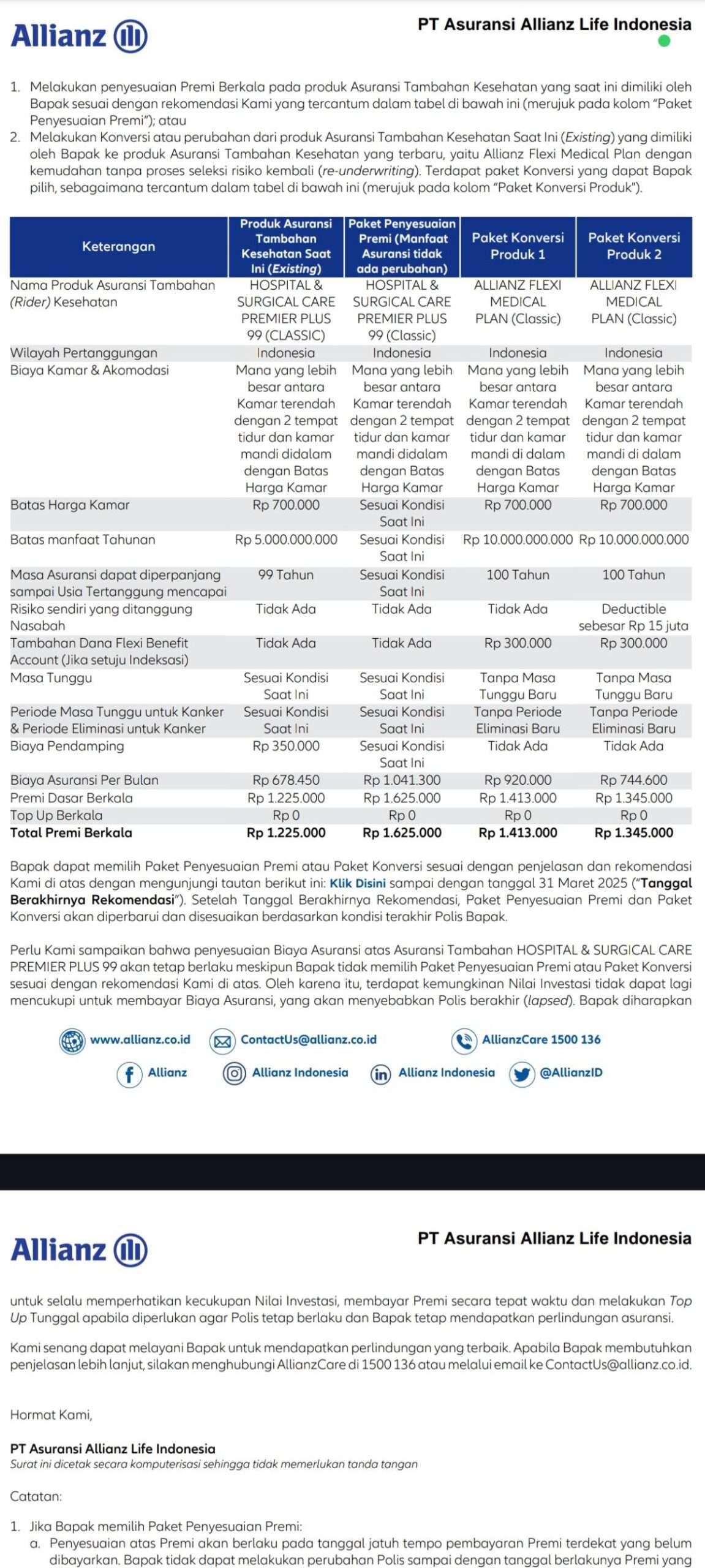 Kepada yang terhormat tim administrasi penjaminan asuransi Allianz, Global Excel Indonesia.