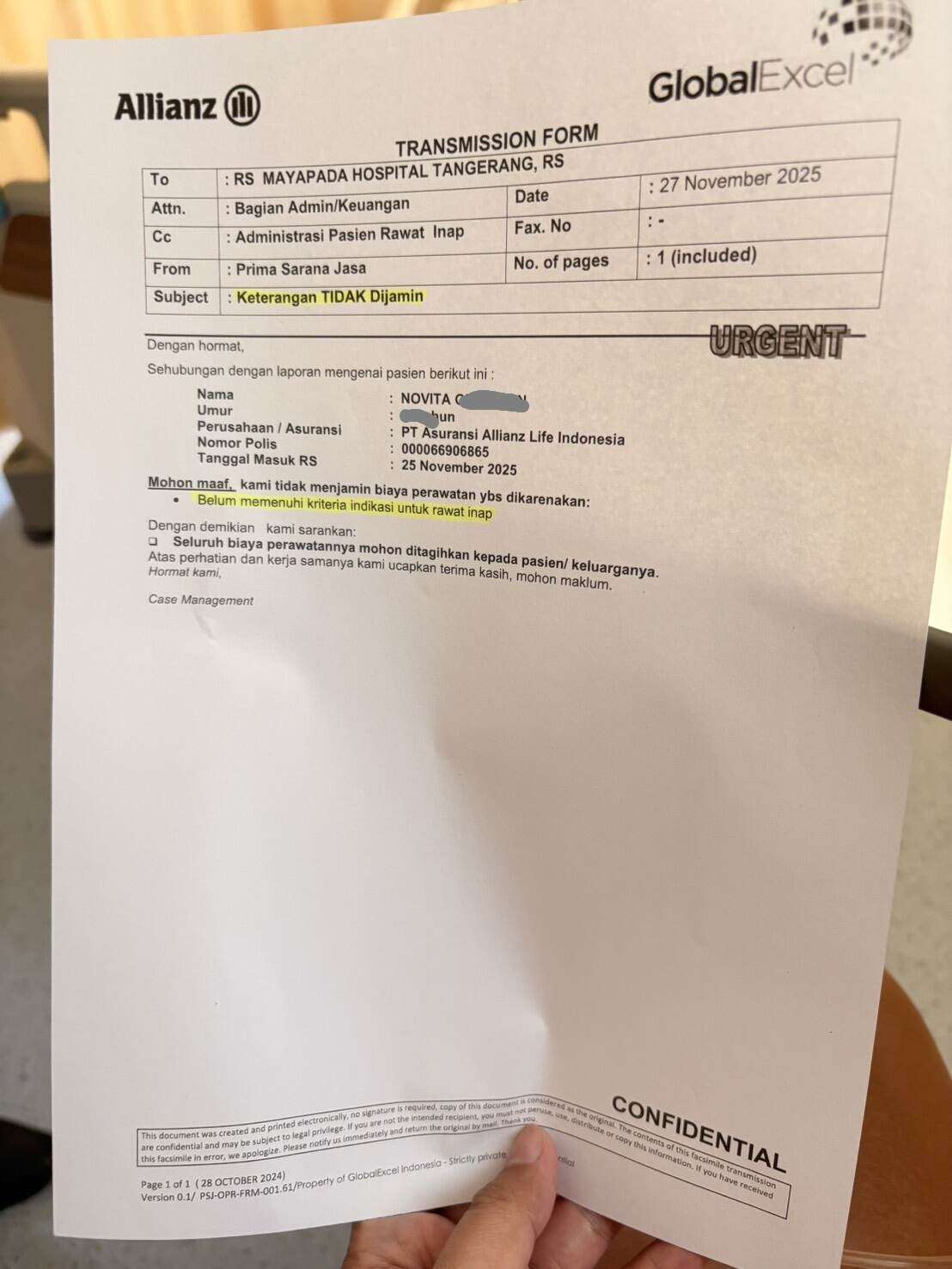 Global Excel Indonesia Mempersulit Klaim Rawat Inap Allianz