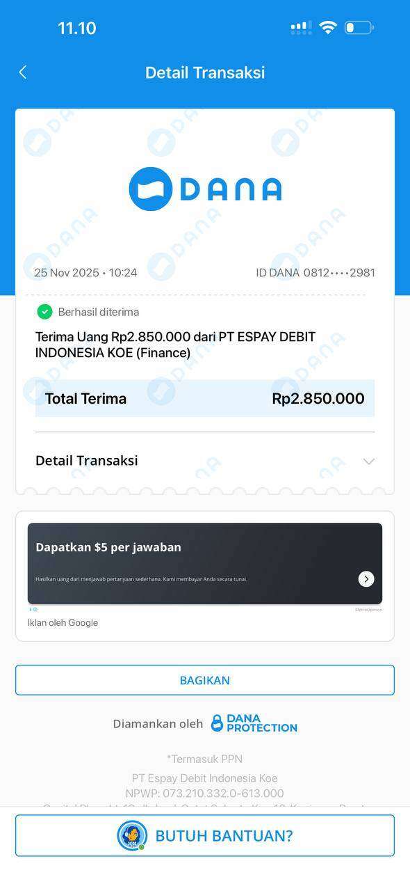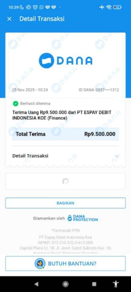 Demikian keluhan saya kepada pihak DANA (PT. Espay Debit Indonesia Koe). Semoga setelah keluhan ini terbit saya bisa mendapat apa yang menjadi hak saya dan semoga hal ini dapat menjadi bahan evaluasi bagi divisi internal DANA untuk lebih meningkatkan kenyamanan dan kepercayaan pengguna.
