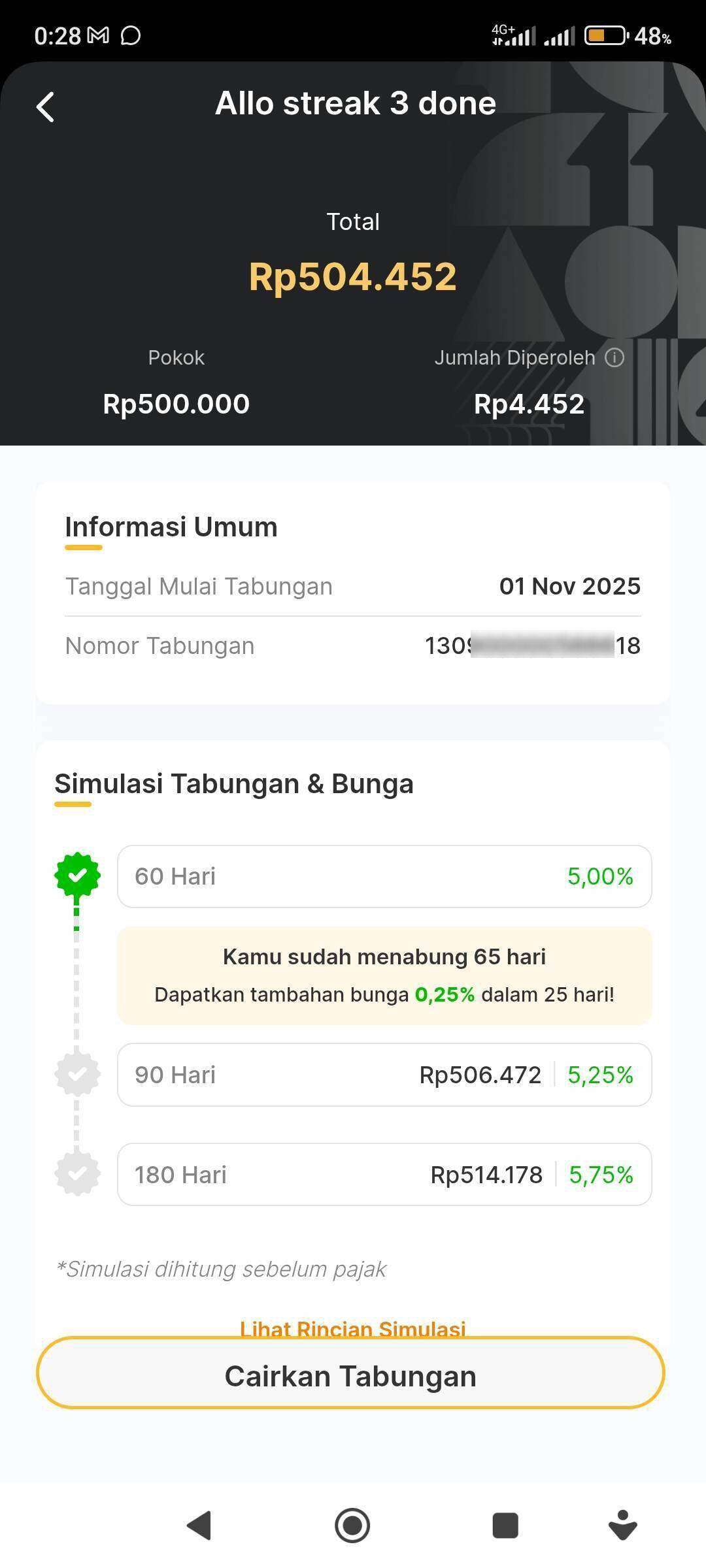 Pada September 2025, saya ikut promo Allo Grow Streak Challenge, link tercantum: https://www.allobank.com/promo/allo-grow-streak-challenge.