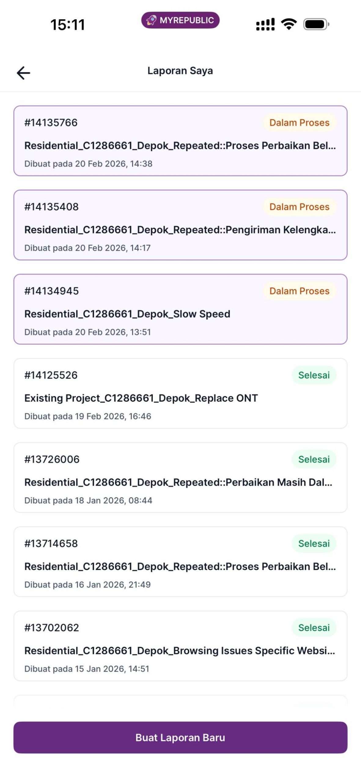Halo, saya adalah pelanggan MyRepublic sejak Januari 2019, dengan ID Pelanggan 1286661.