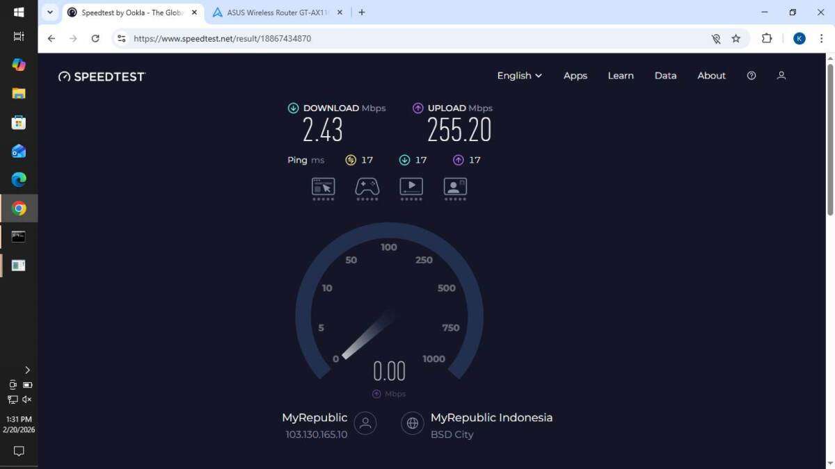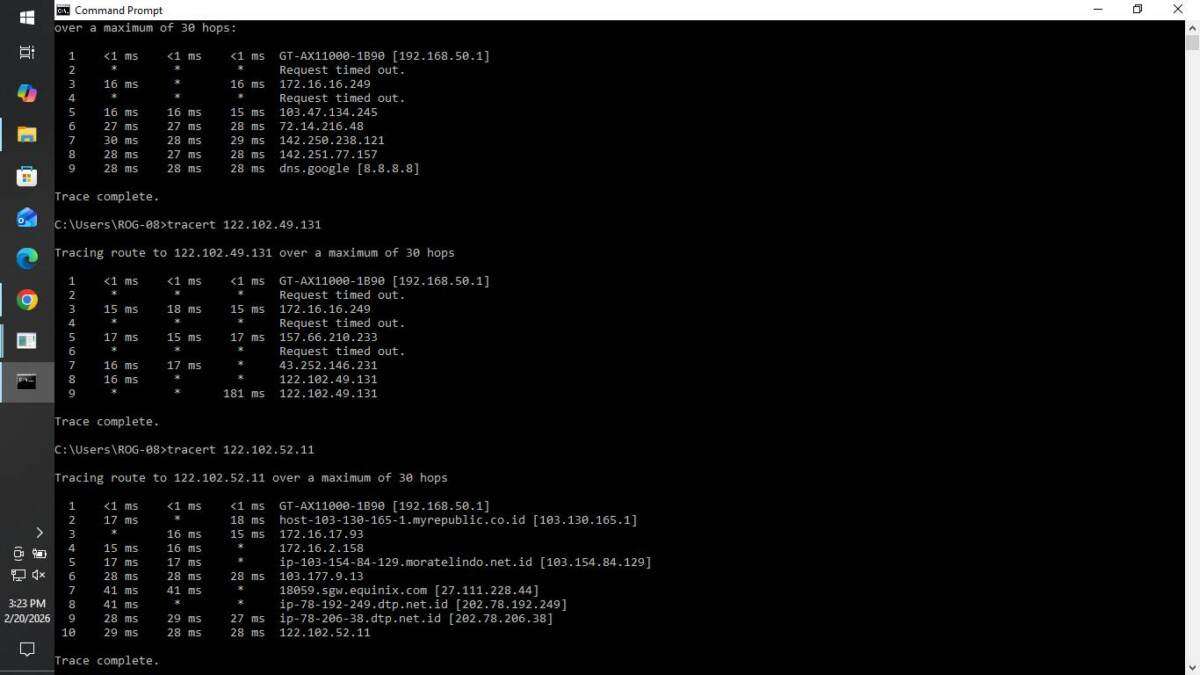 Pada hari ini, tanggal 20 Februari 2026, saya mengajukan pergantian ONT, di mana ONT lama saya saat di-ping suka ada RTO. Maka dari itu, saya mengajukan pergantian perangkat ONT. Setelah pergantian perangkat ONT dilakukan, koneksi MyRepublic saya menjadi hancur tidak jelas, di mana routing koneksi local RTO tidak jelas saat di-ping seperti permasalahan di bulan Januari 2026 yang belum juga selesai.