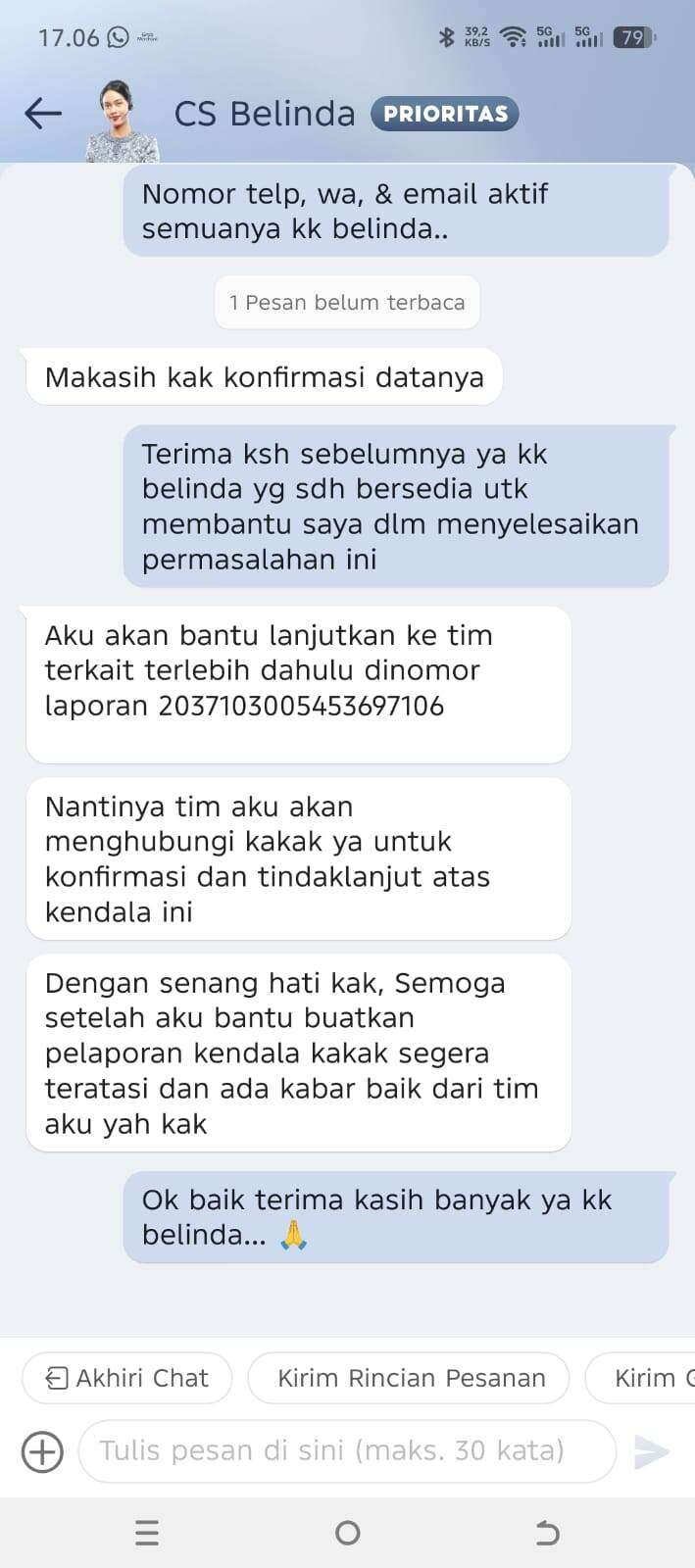 Lalu saya melaporkan hal ini kepada CS Shopee dan saya disarankan untuk mengajukan refund. Saya pun mengajukan pengembalian barang dengan nomor laporan 2037103005453697106 dengan estimasi waktu 3 x 24 jam (maksimal hingga tanggal 29 Maret 2026), dan saya dijanjikan akan dihubungi (melalui telepon/email yang terdaftar oleh tim terkait).