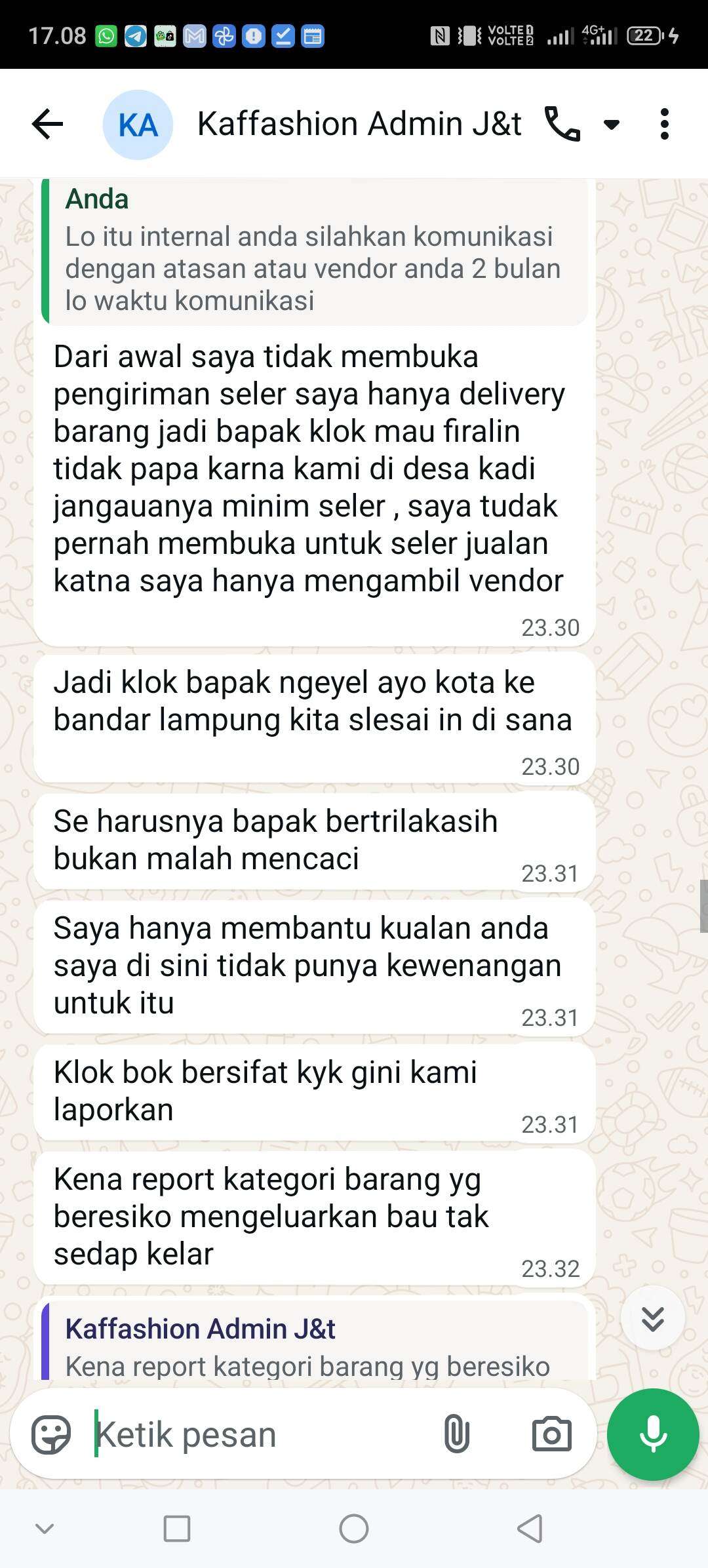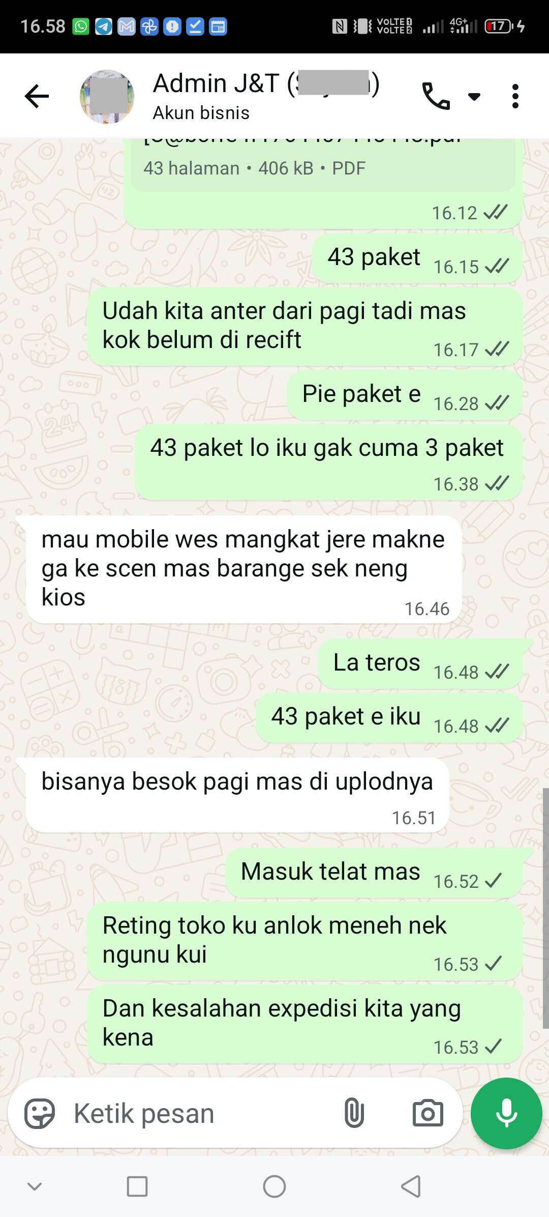 Saya sudah melakukan complain baik ke pihak J&T Express maupun ke TikTok. Namun hingga saat ini, tidak ada penyelesaian yang jelas. Layanan pelanggan hanya memberikan balasan umum tanpa tindakan konkret.