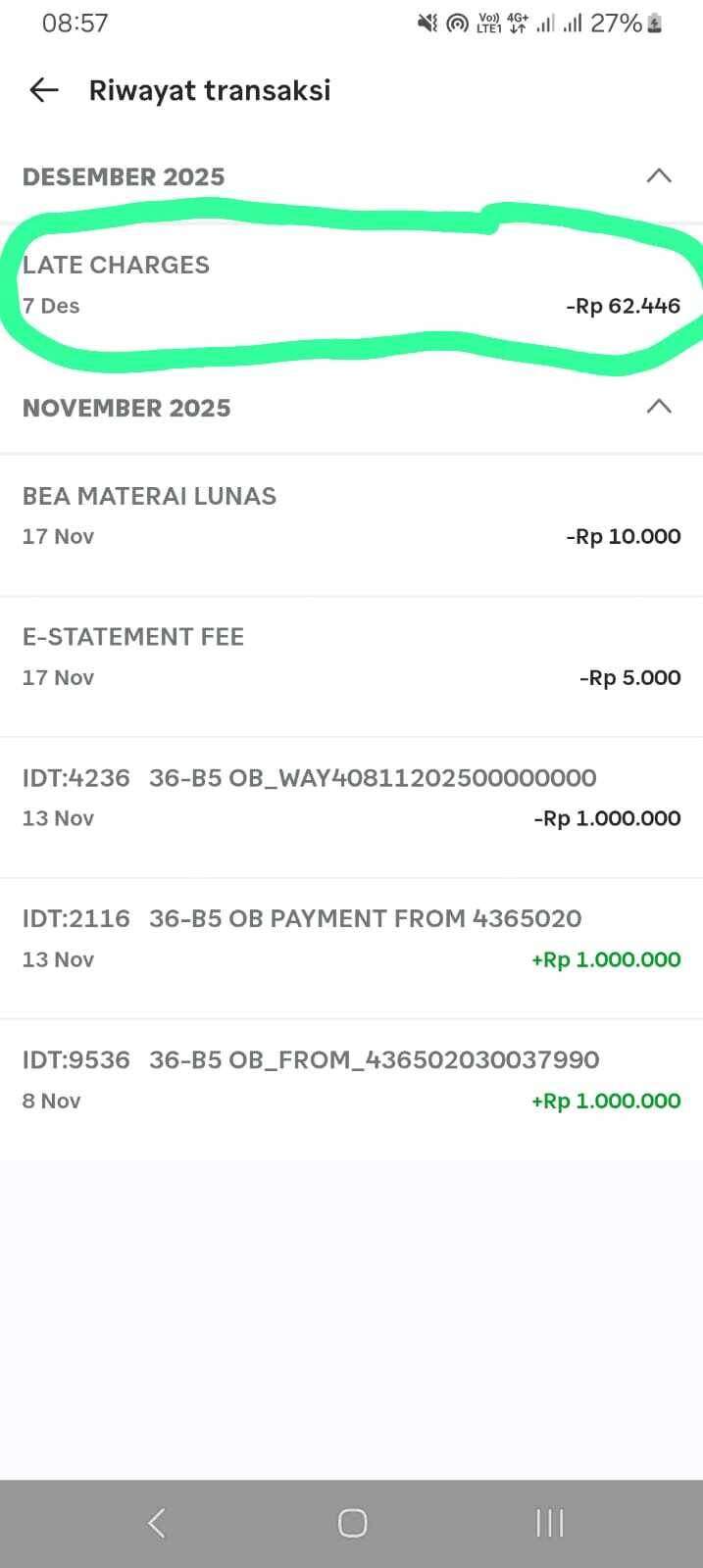 Saya telah melakukan pembayaran tagihan pada tanggal jatuh tempo melalui m-Banking BCA dan transaksi tersebut berhasil. Bukti pembayaran juga tercatat dalam mutasi rekening saya. Namun, pada lembar tagihan bulan berikutnya, saya menemukan adanya late charge yang dikenakan. Tentu saja, hal ini membuat saya merasa keberatan karena saya telah memenuhi kewajiban pembayaran tepat waktu.