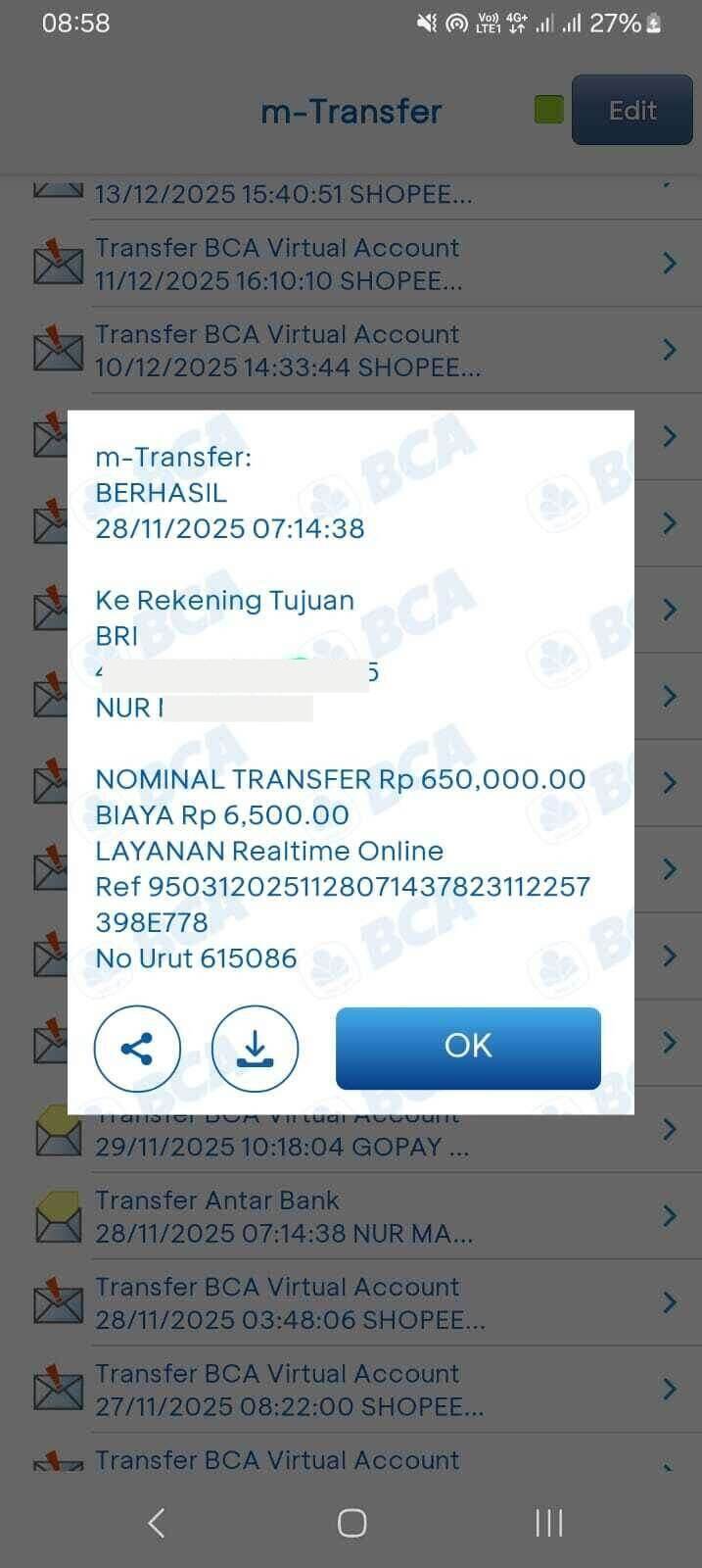 Saya berharap Bank BRI dapat memberikan klarifikasi dan melakukan koreksi terhadap biaya denda tersebut, agar kejadian serupa tidak terulang di masa mendatang.