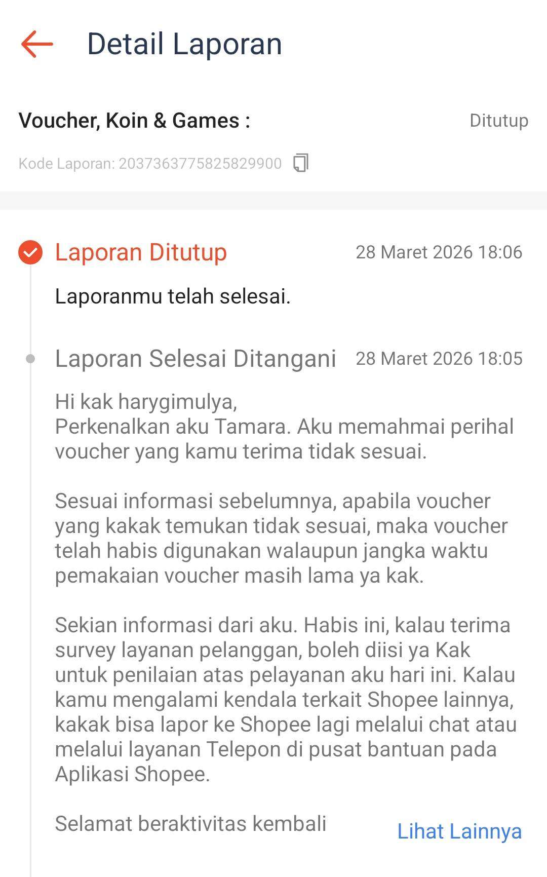 Tim CS Shopee sama sekali tidak memahami kendala yang saya alami ini. Dan yang lebih mengecewakan, laporan saya langsung ditutup sepihak tanpa saya sempat memberi penjelasan.