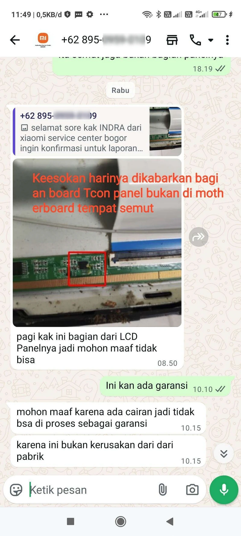 Kami adalah konsumen setia Xiaomi sejak lama dan telah mempercayai produk TV-nya, bahkan sudah membeli 2 TV Xiaomi. Namun, dengan adanya masalah ini, kami tergoda untuk beralih ke merek lain. Kami jadi bertanya-tanya apakah teknisinya amatir atau dipaksakan agar garansi kami gugur?