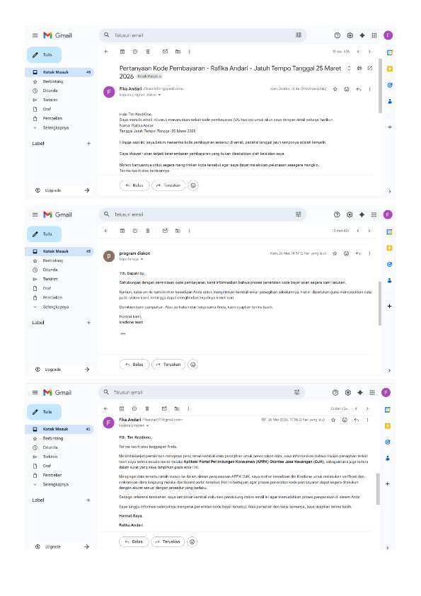 Sejak Selasa, 24 Maret 2026 (sebelum jatuh tempo), saya sudah menanyakan kode pembayaran/VA melalui email resmi.