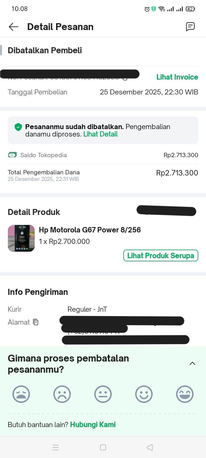 Selanjutnya, setelah mempertimbangkan risiko mengenai transaksi tersebut, di hari yang sama saya memilih untuk membatalkan transaksi. Proses pembatalan di Tokopedia disetujui dan saldo pembatalan masuk ke saldo aplikasi.