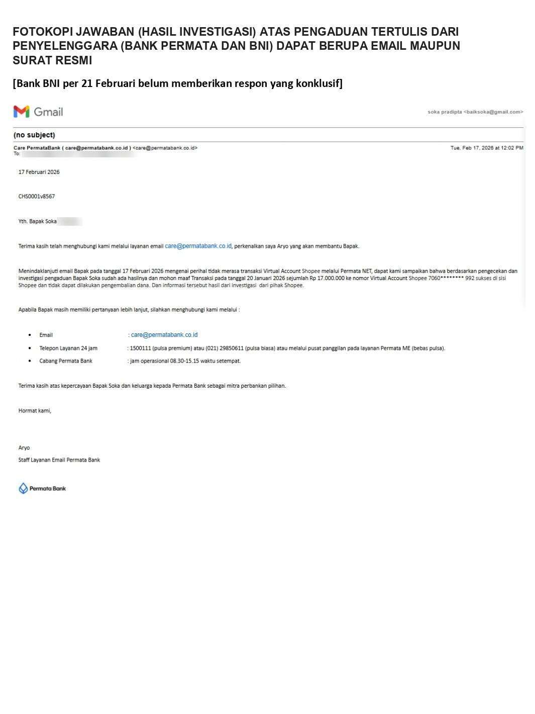 Saya menulis surat ini agar kejadian serupa tidak menimpa nasabah lain di kemudian hari, serta mendorong peningkatan keamanan sistem perbankan digital di Indonesia.