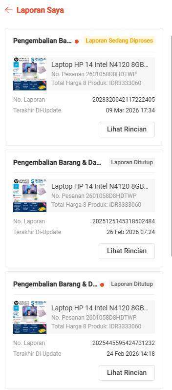 Namun, hingga saat ini belum ada pengembalian barang kepada penjual (saya). Saya sudah berusaha menghubungi CS Shopee berkali-kali, tetapi tidak ada kejelasan dari mereka, hanya meminta waktu tambahan tanpa ada progress yang jelas.