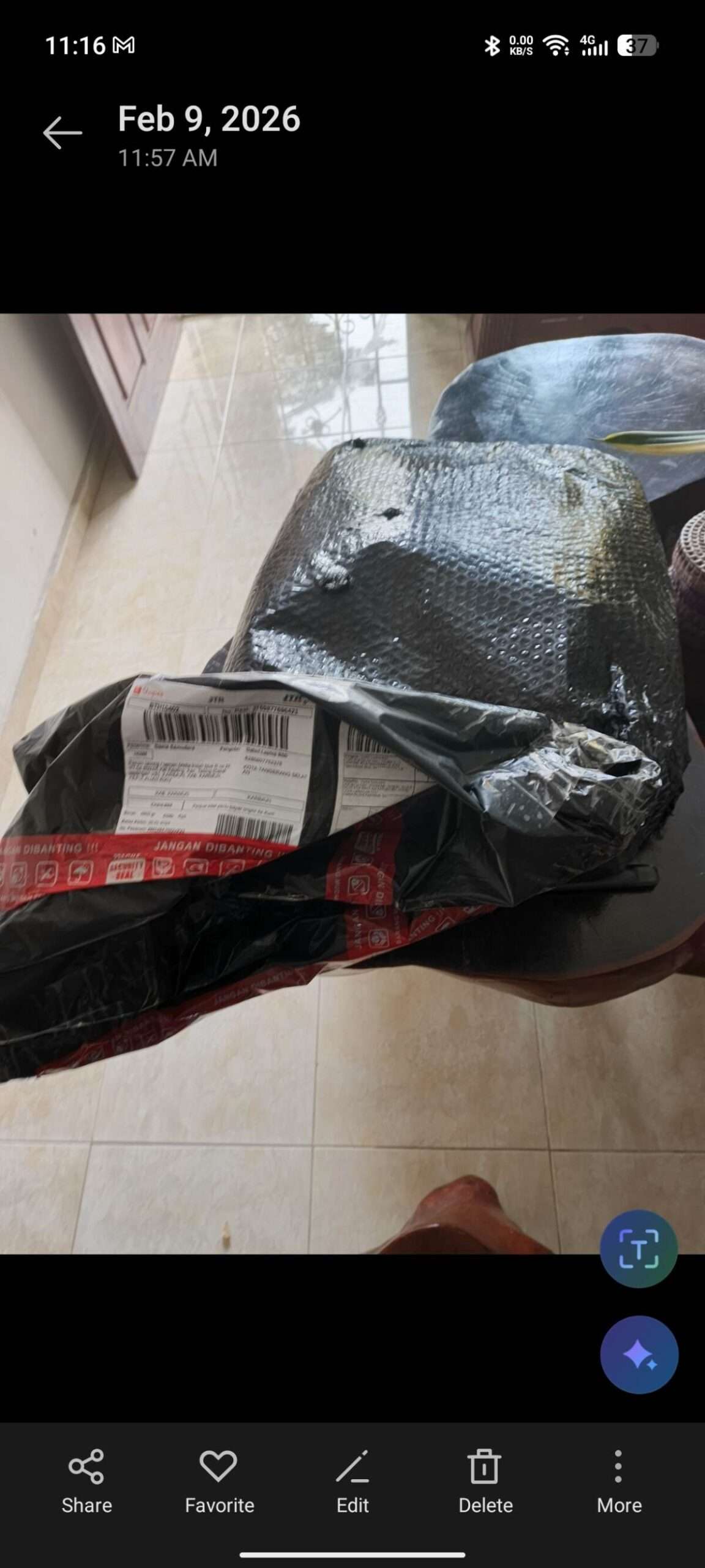 Selain itu, dari kondisi paket juga terlihat tidak wajar karena paket terasa sangat ringan ketika dipegang, yang sangat tidak sesuai dengan berat paket hampir 7 kg seperti yang tercantum pada resi pengiriman.