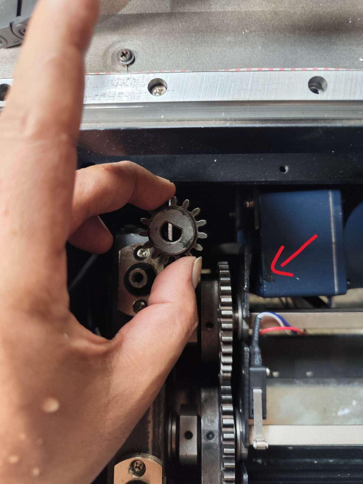 - Komponen gear yang melekat permanen dengan lem besi dilepas paksa.
