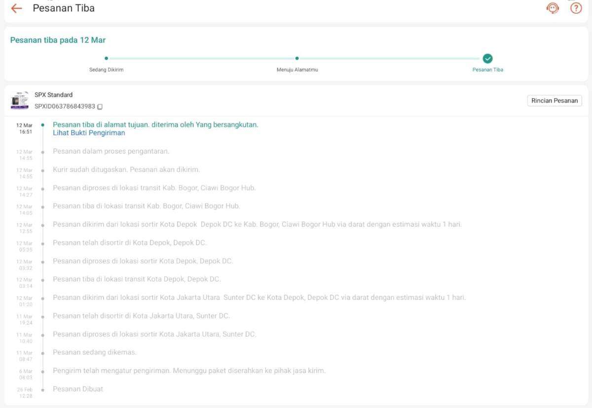 Oleh karena itu, saya melakukan pre-order ponsel Samsung S26 Ultra melalui Shopee (Samsung Official), dengan nomor order: 260226PS56CGR6. Saya melihat ada penawaran dari Samsung untuk Samsung Care+ 3 tahun, hanya bayar 2 tahun dengan harga Rp1.650.000. Pre-order saya lakukan pada tanggal 26 Februari 2026 dan produk diterima pada tanggal 12 Maret 2026.