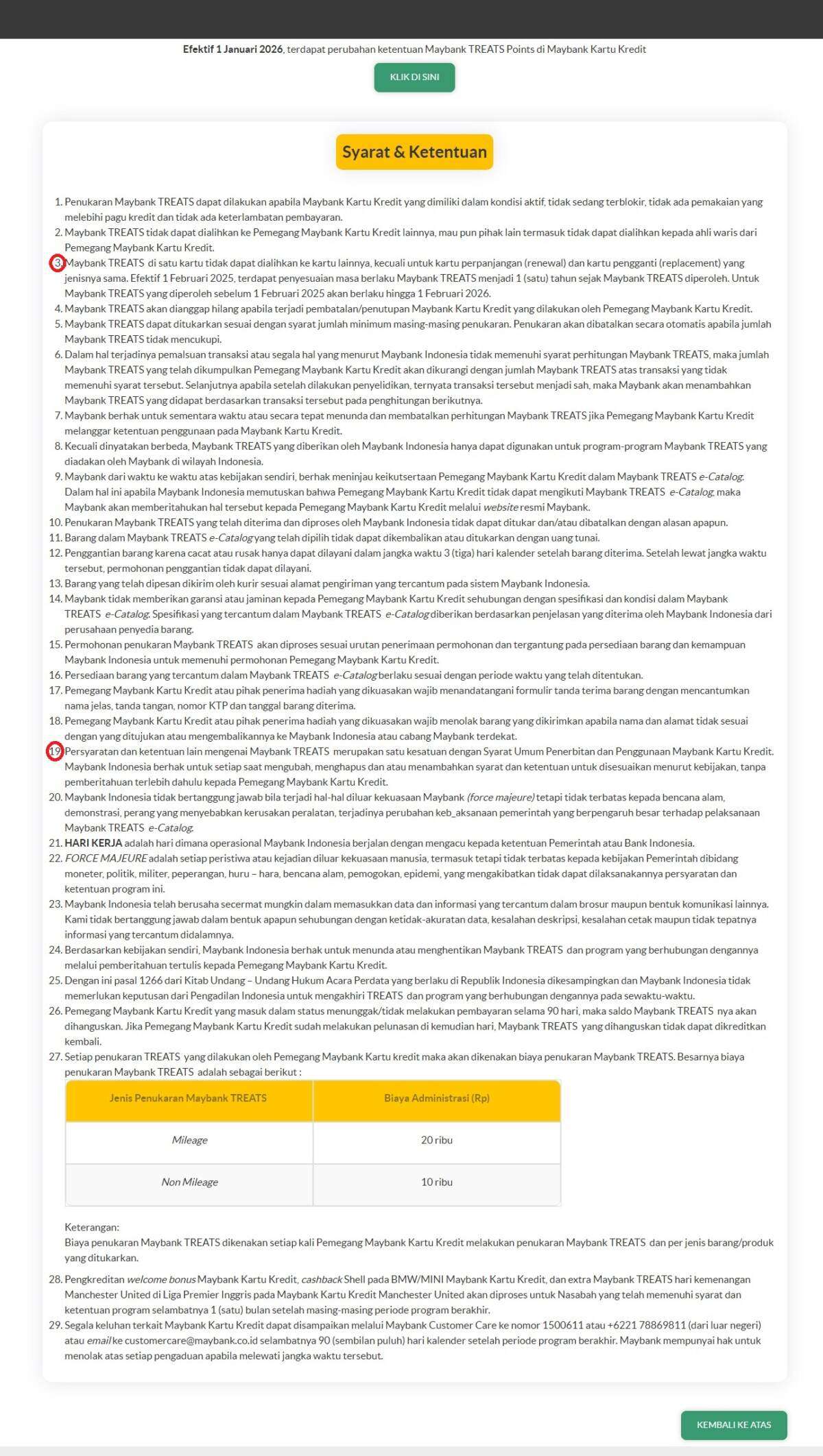 Tanggal 18 November 2025, saya mendapat email “Informasi perubahan Maybank Treats Points di Maybank Kartu Kredit” yang berisi perubahan nilai perolehan dan penukaran poin saja, tanpa ada informasi perubahan masa aktif poin! (https://www.maybank.co.id/ketentuanTREATS)
